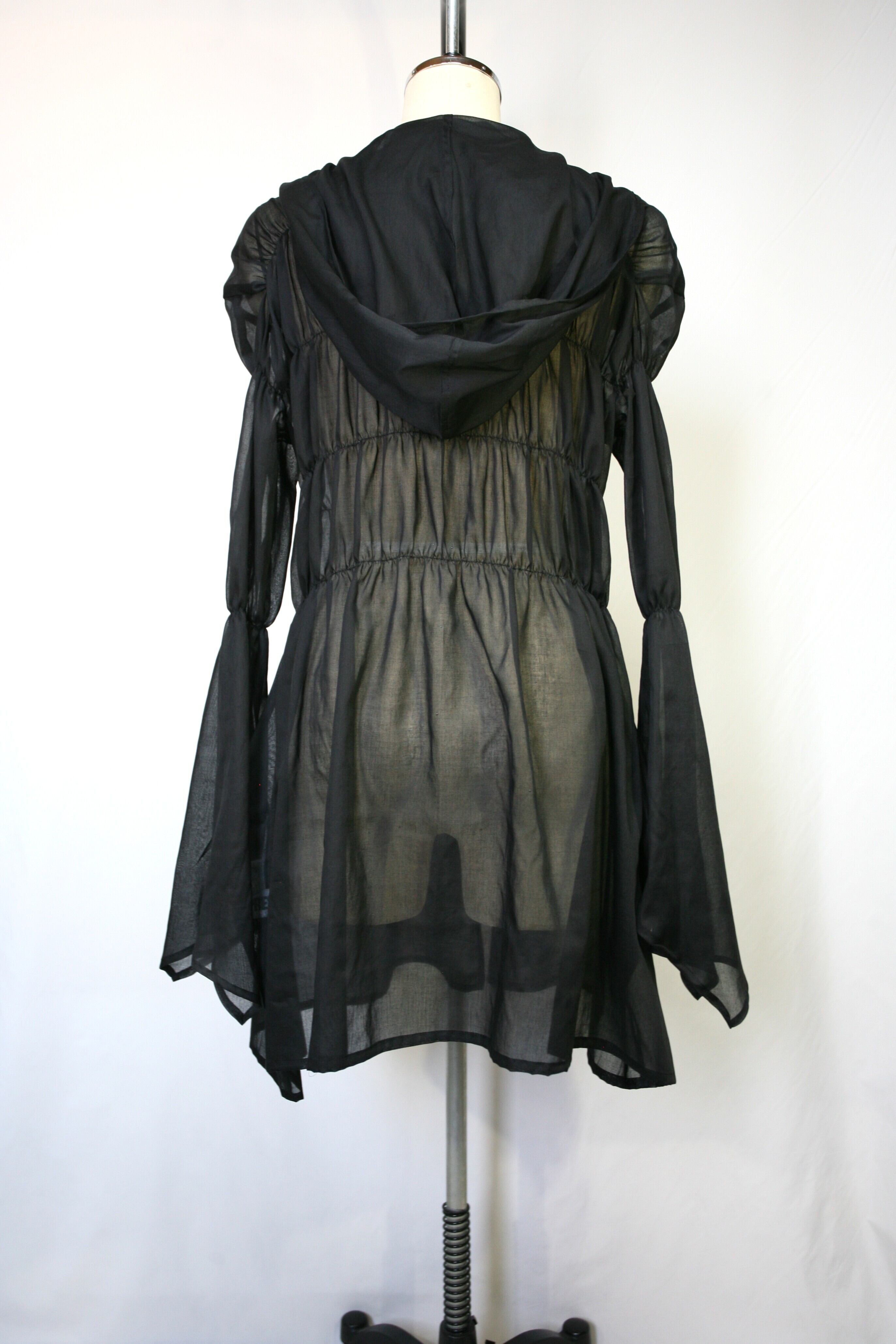 前後身頃の裏に4か所ゴムを通してシャーリングリングする事により、身幅140㎝を上記の出来上がりサイズにしています。