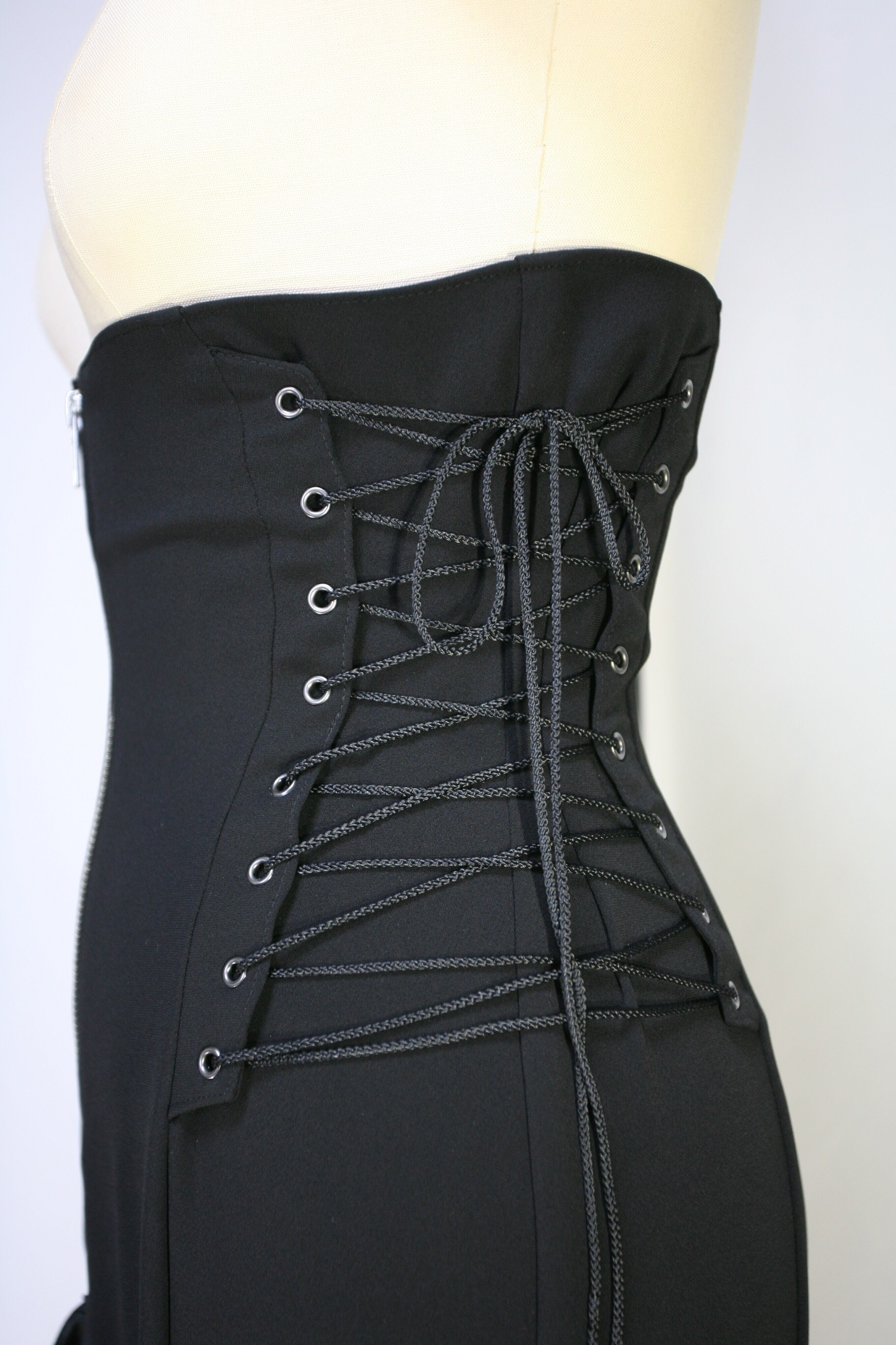 両脇の編み上げで、ウエストのサイズを調整する事が出来ます。