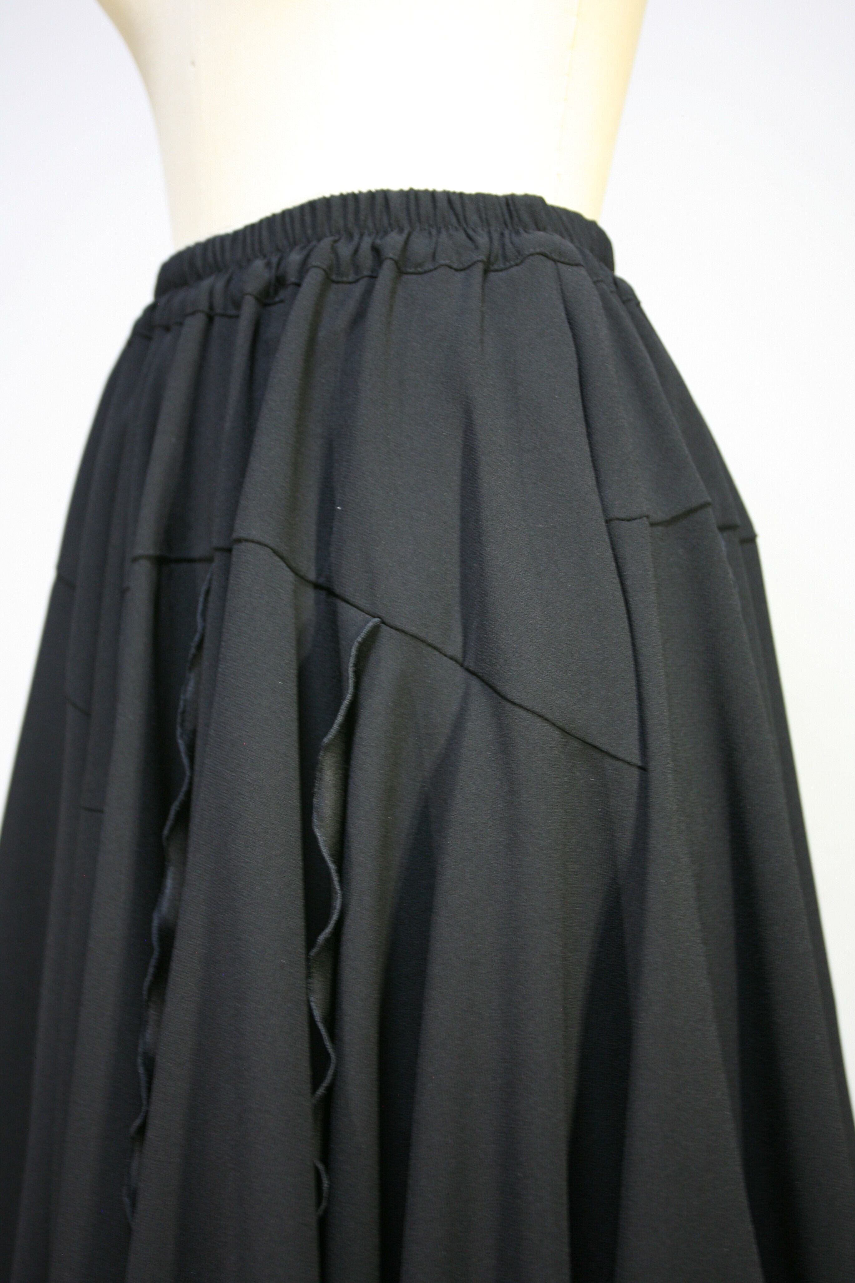 ヒップ辺りの切り替えで長さが違うピースを重ねて縫っていているので、歩くと結構はだけると思います。