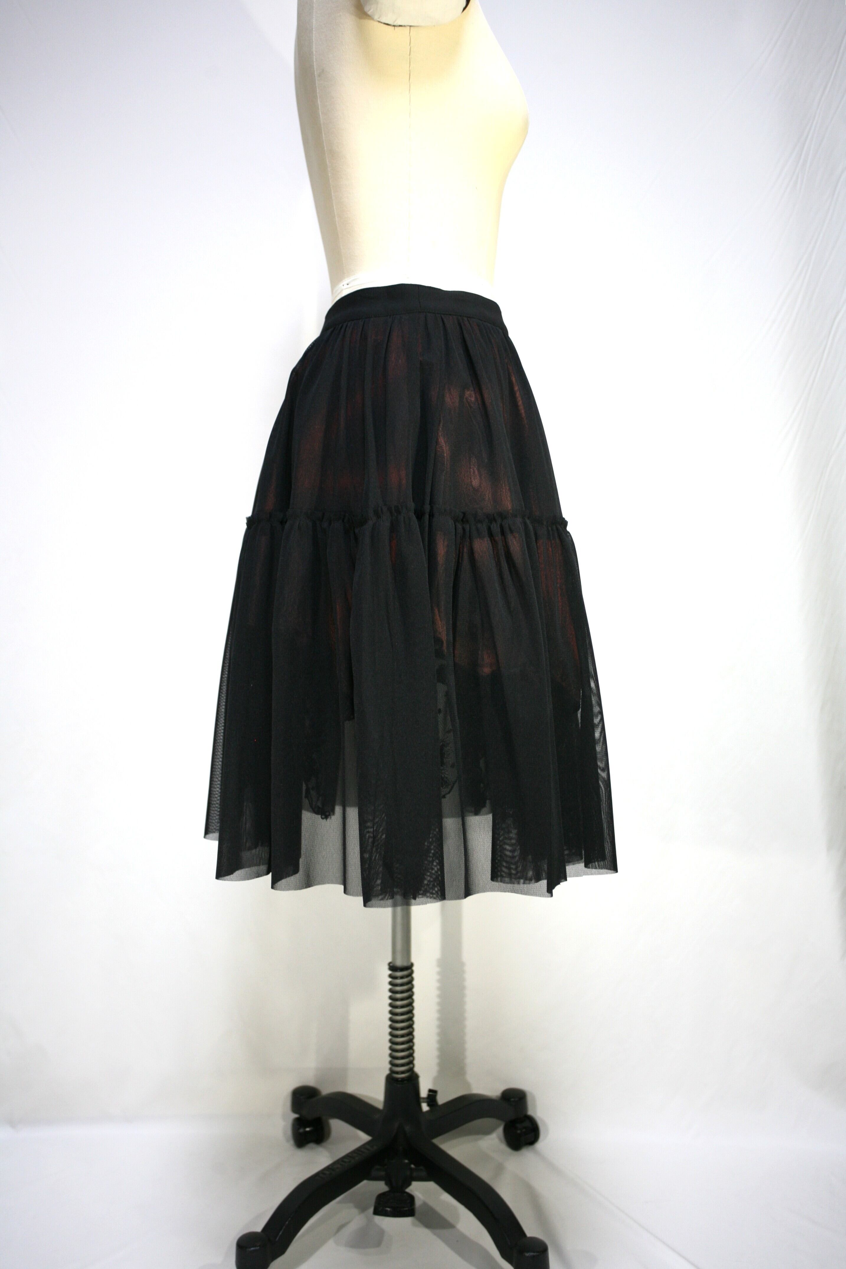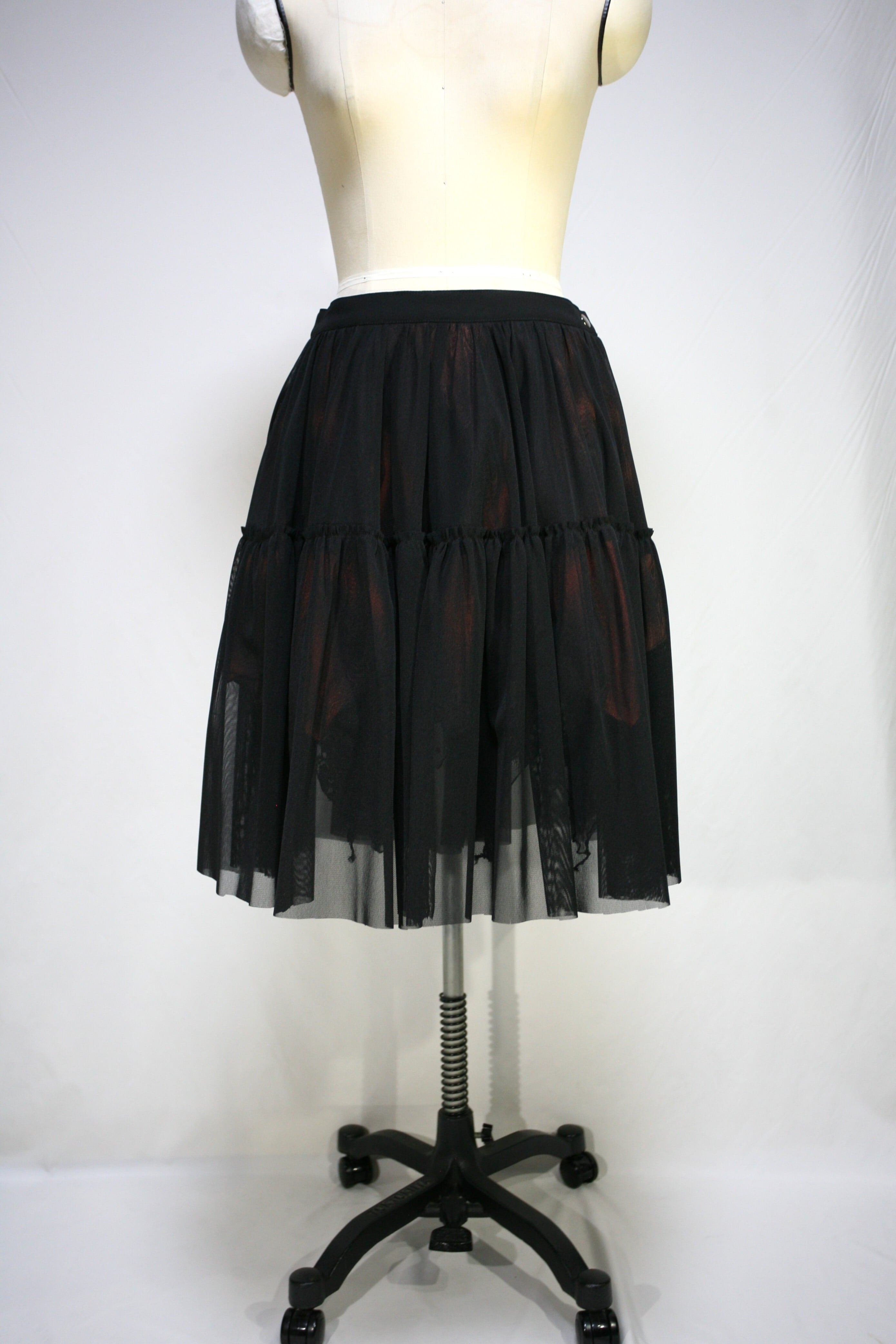 裾はプリントとレース生地が巻きロック始末で、パワーネットは断ち切りです。