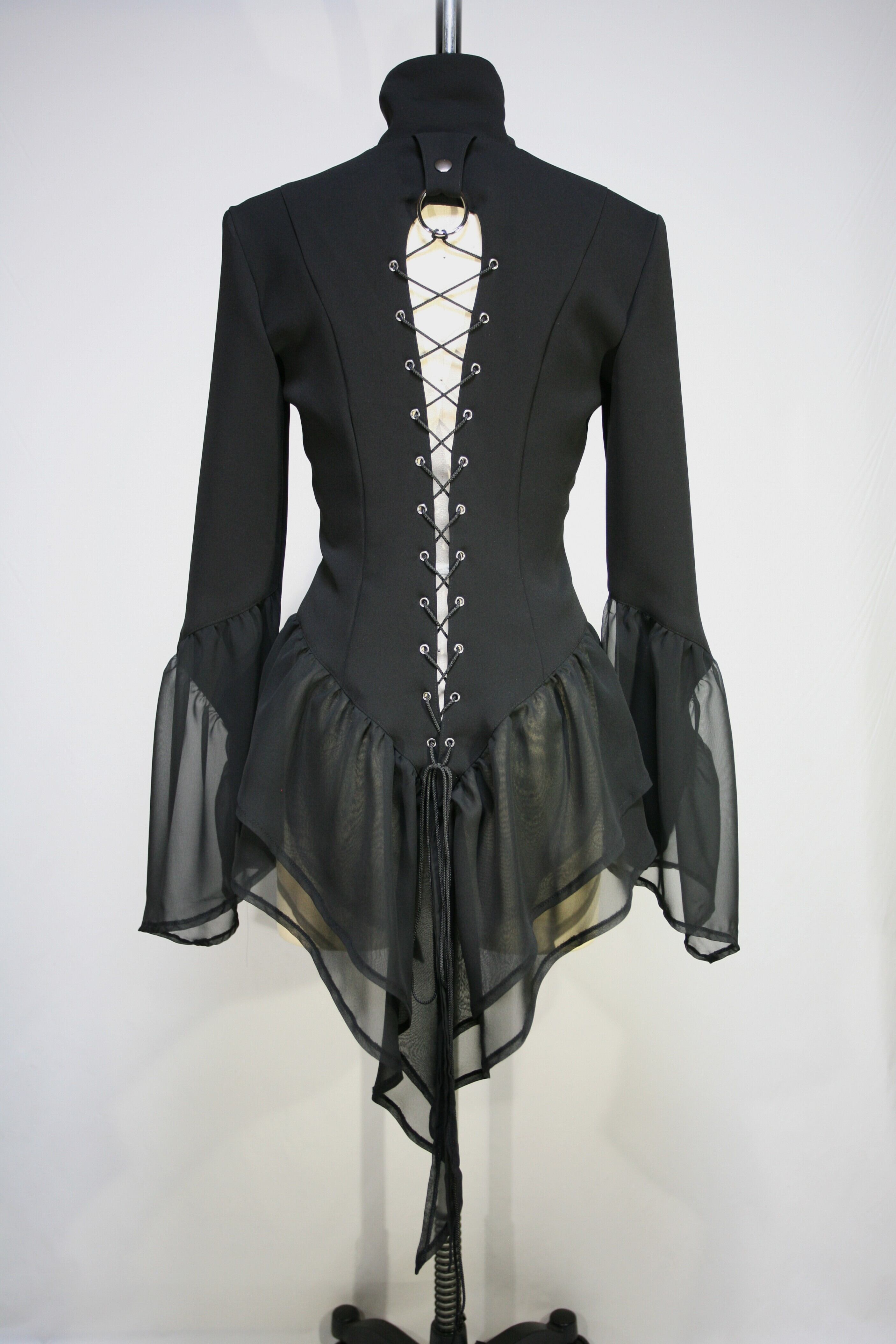 後中心は開いていて編み上げでサイズを調整する事が出来ます。