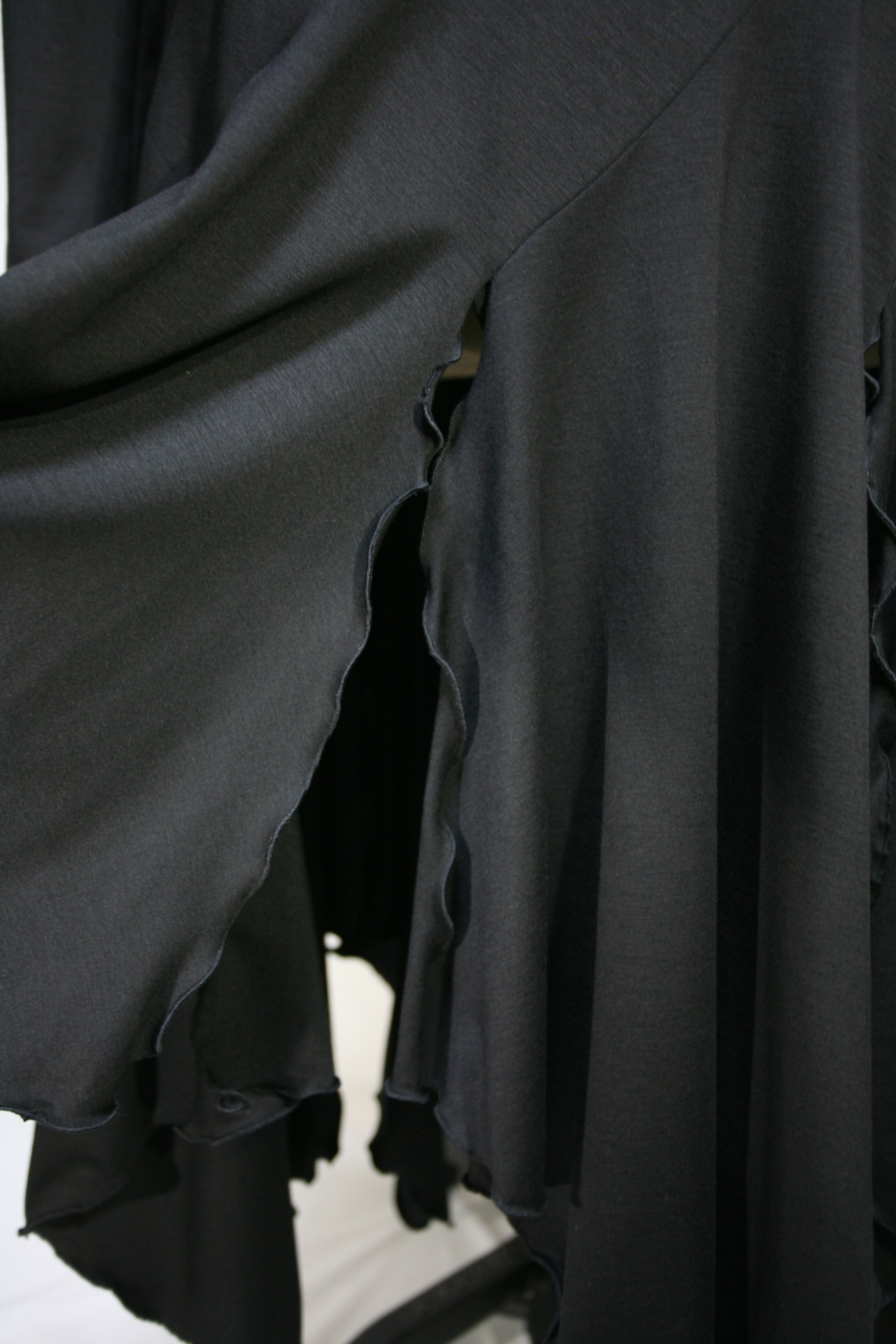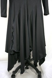 ウエストで切り替えていて、下部分はエスカルゴ風の8枚はぎで切り替え下31㎝の所から巻きロック始末のスリットが入っています。