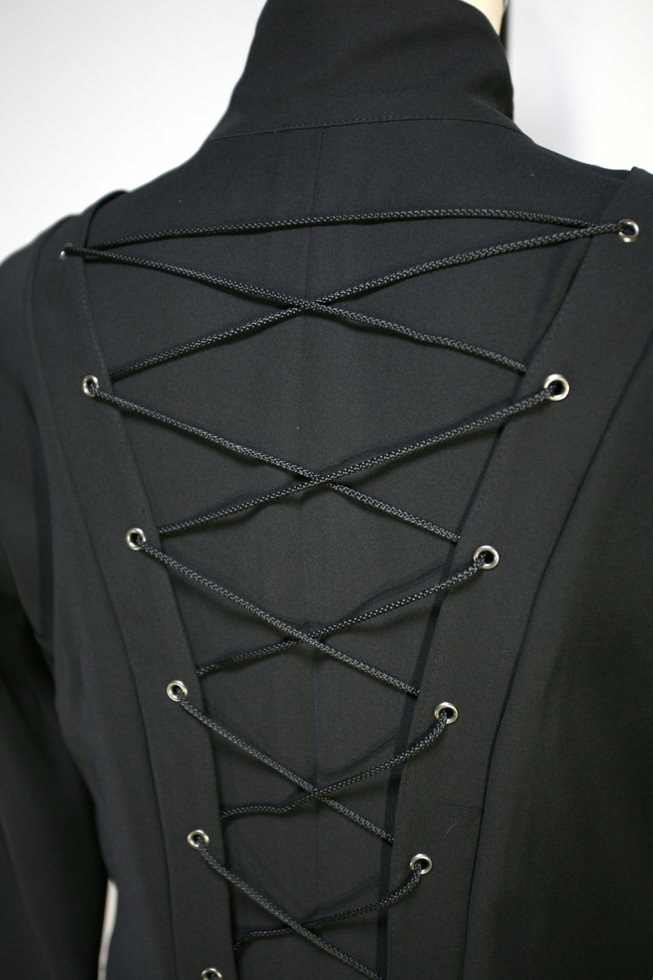 後ろ身頃の編み上げでサイズを調整する事が出来ます。