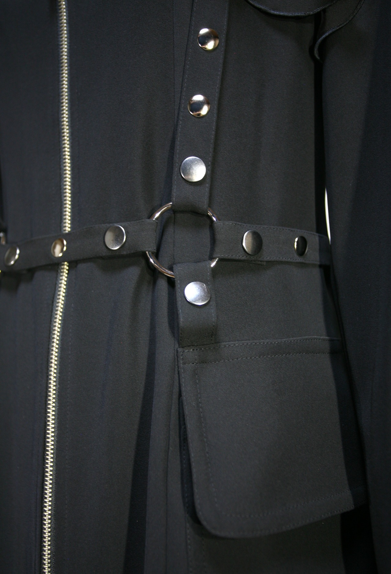 前身頃にドット釦で、開閉出来るハーネス風ベルトが付いています。