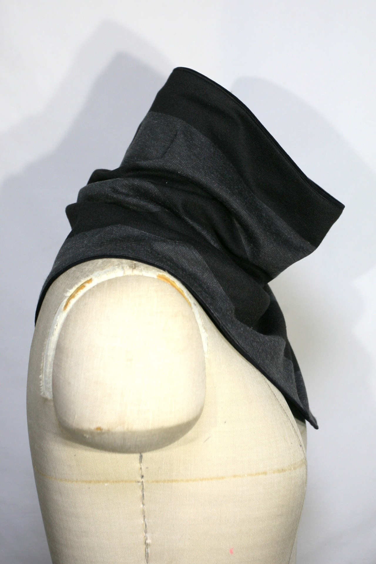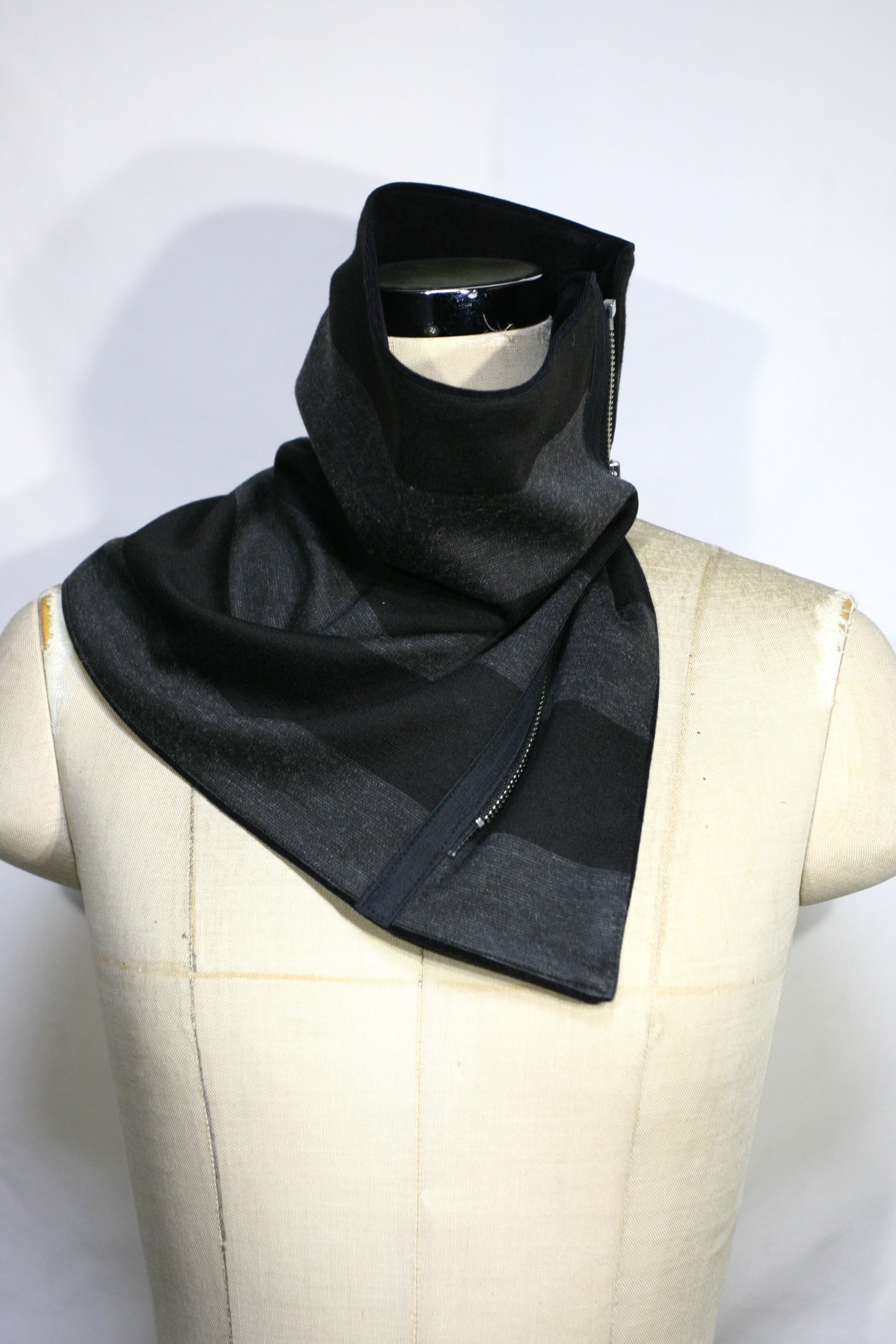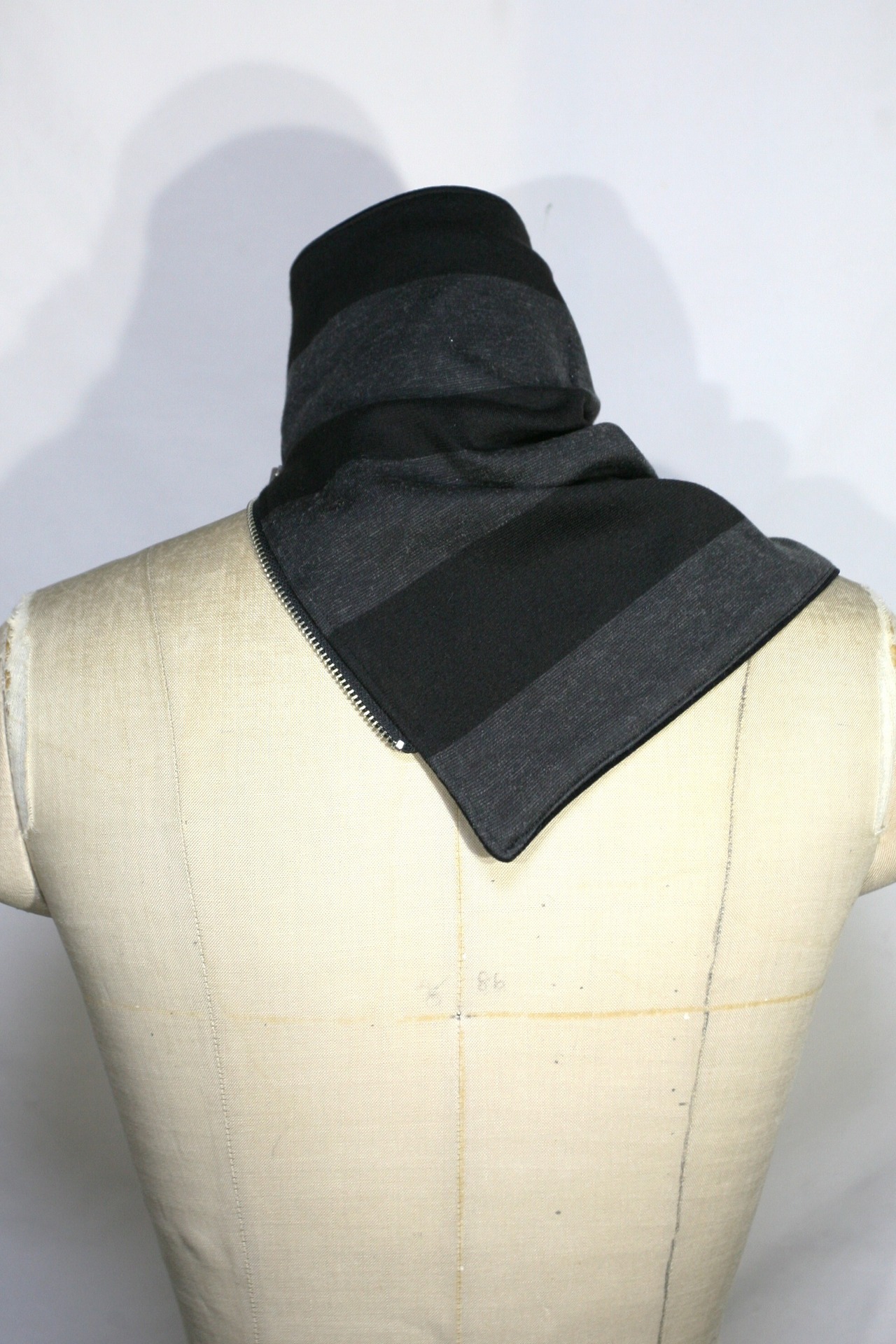 表側は黒×グレーの横ストライプ、裏側は黒無地のベロアになっています。