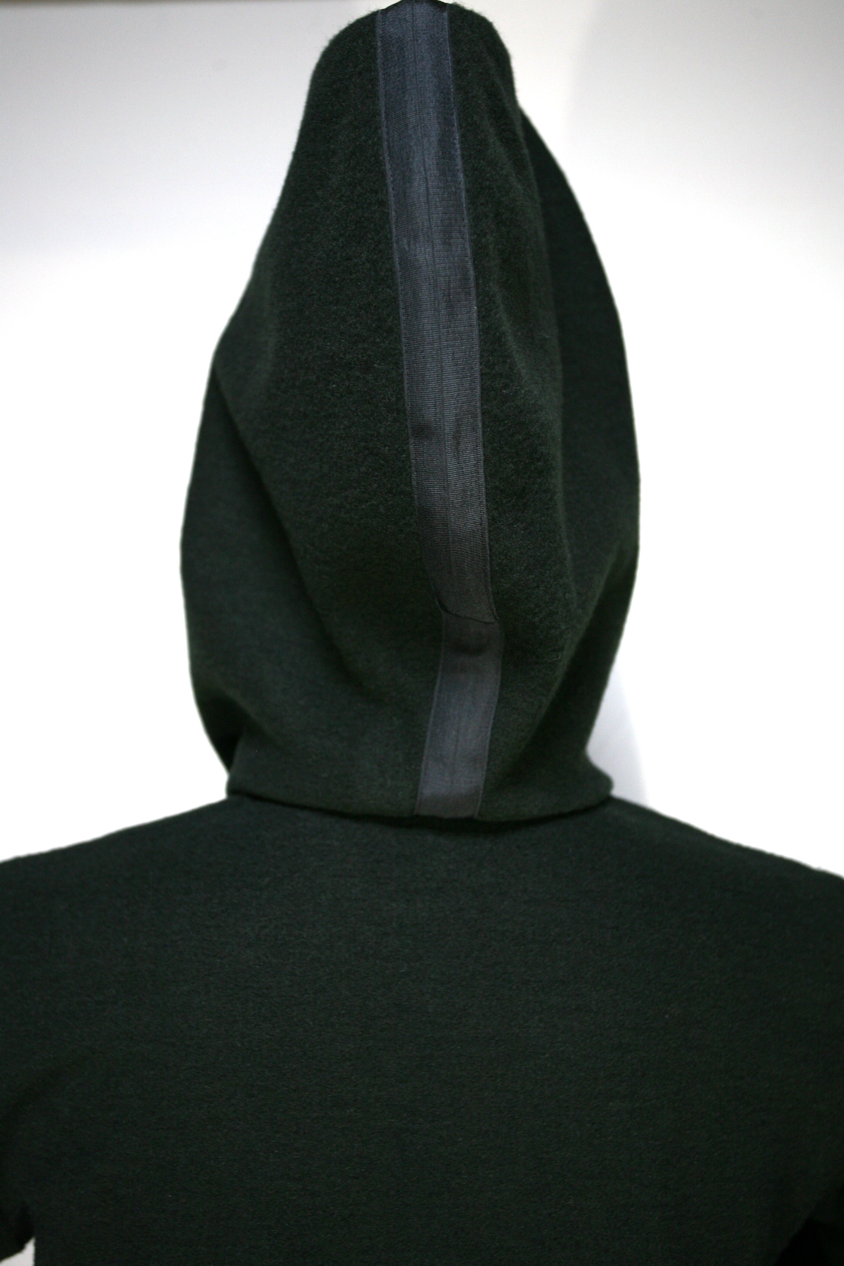 フードの中心に24㎜ストレッチテープを縫い付けています。