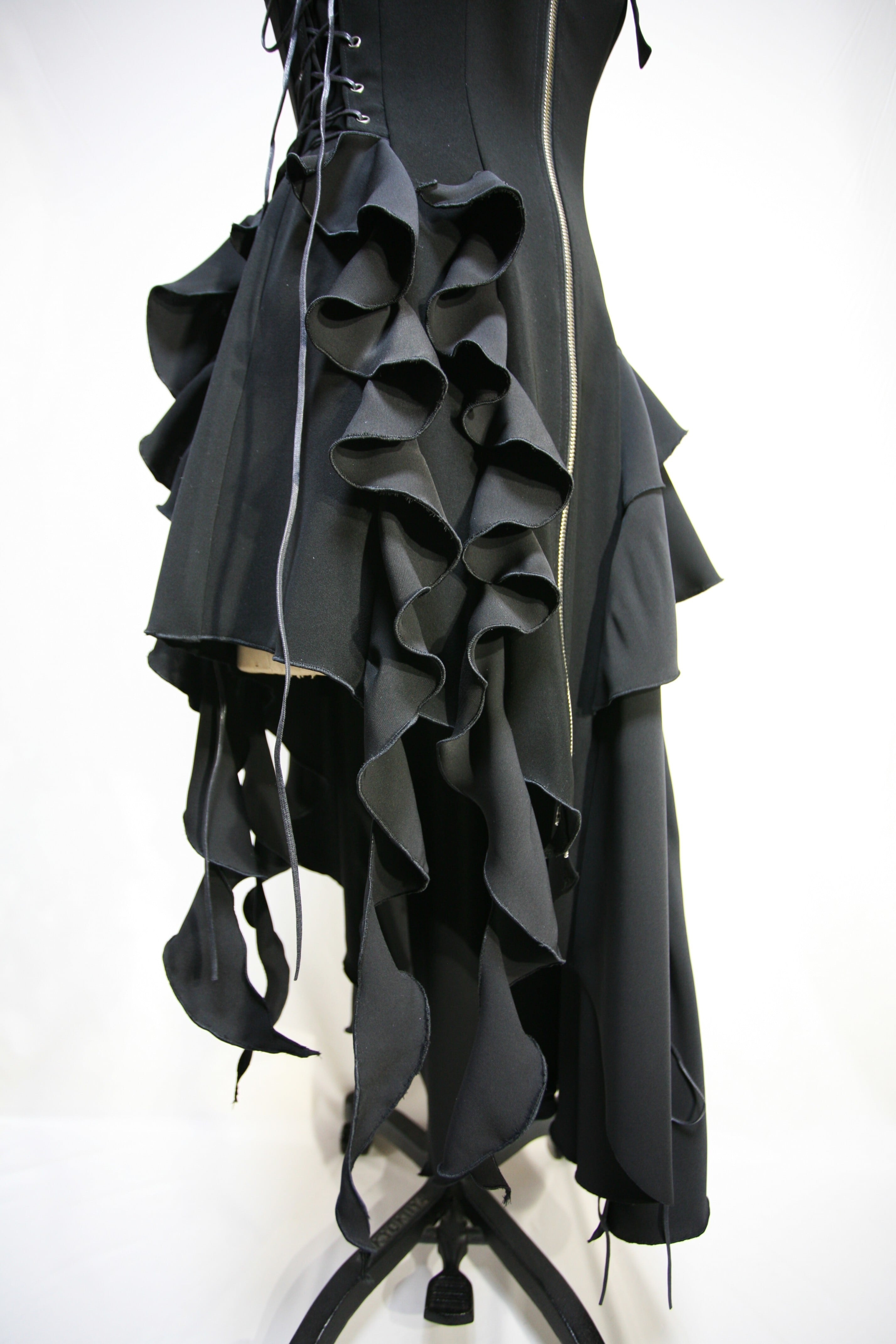 前中心で逆開のダブルジッパー開きになっています。