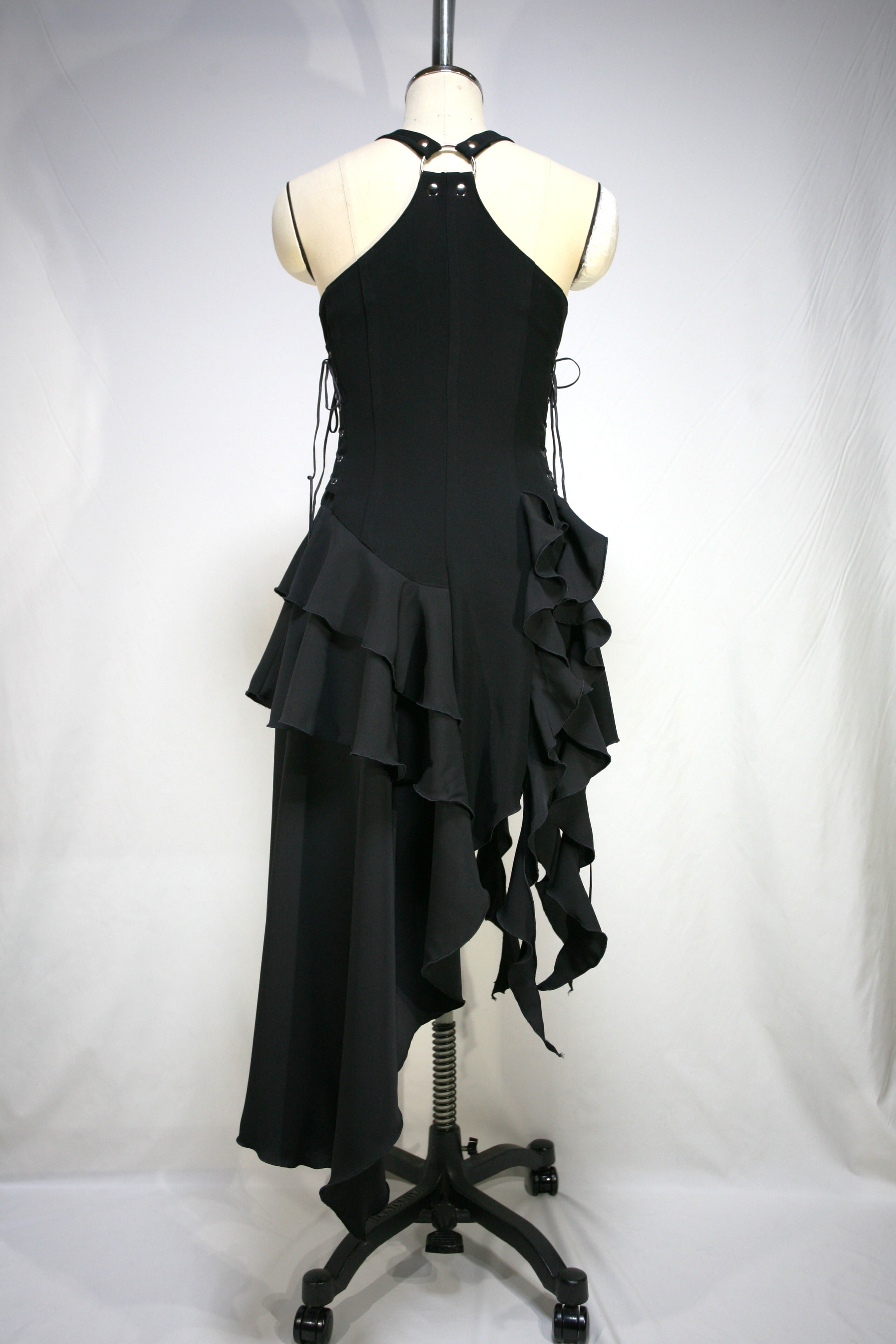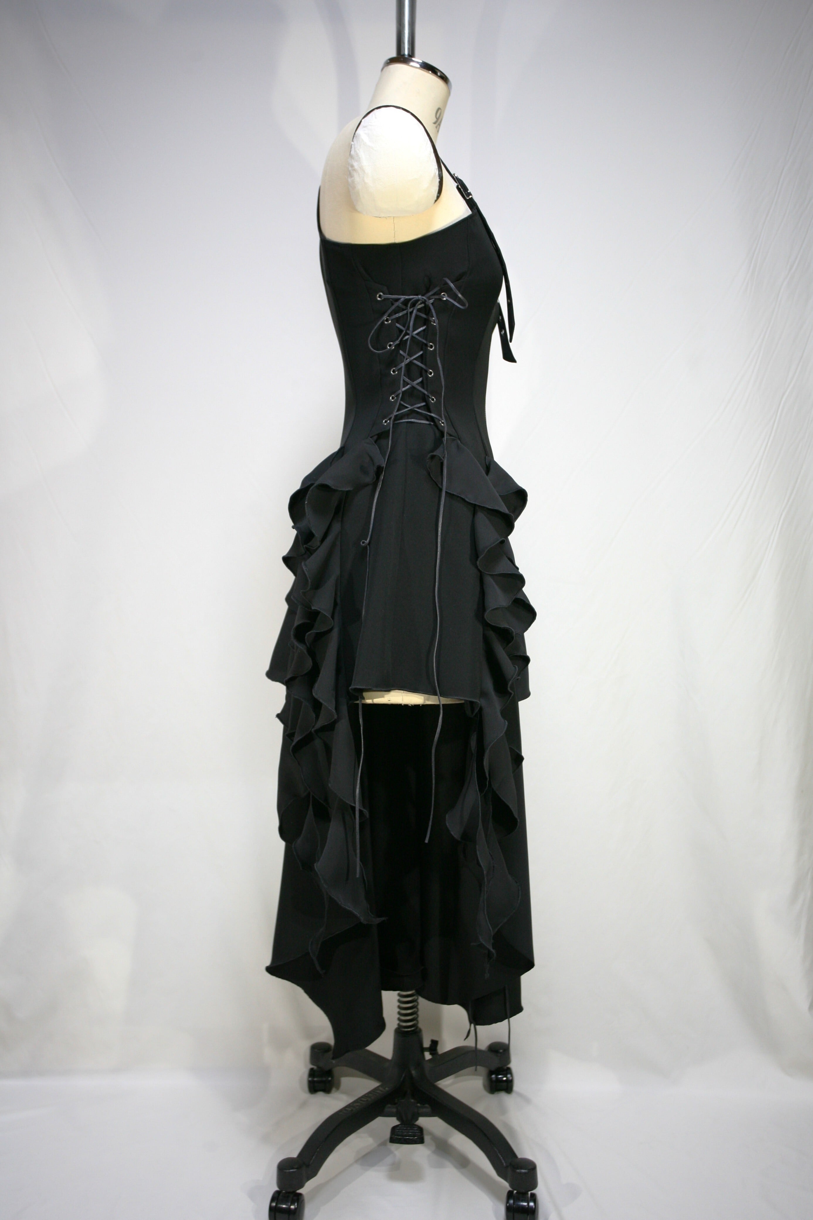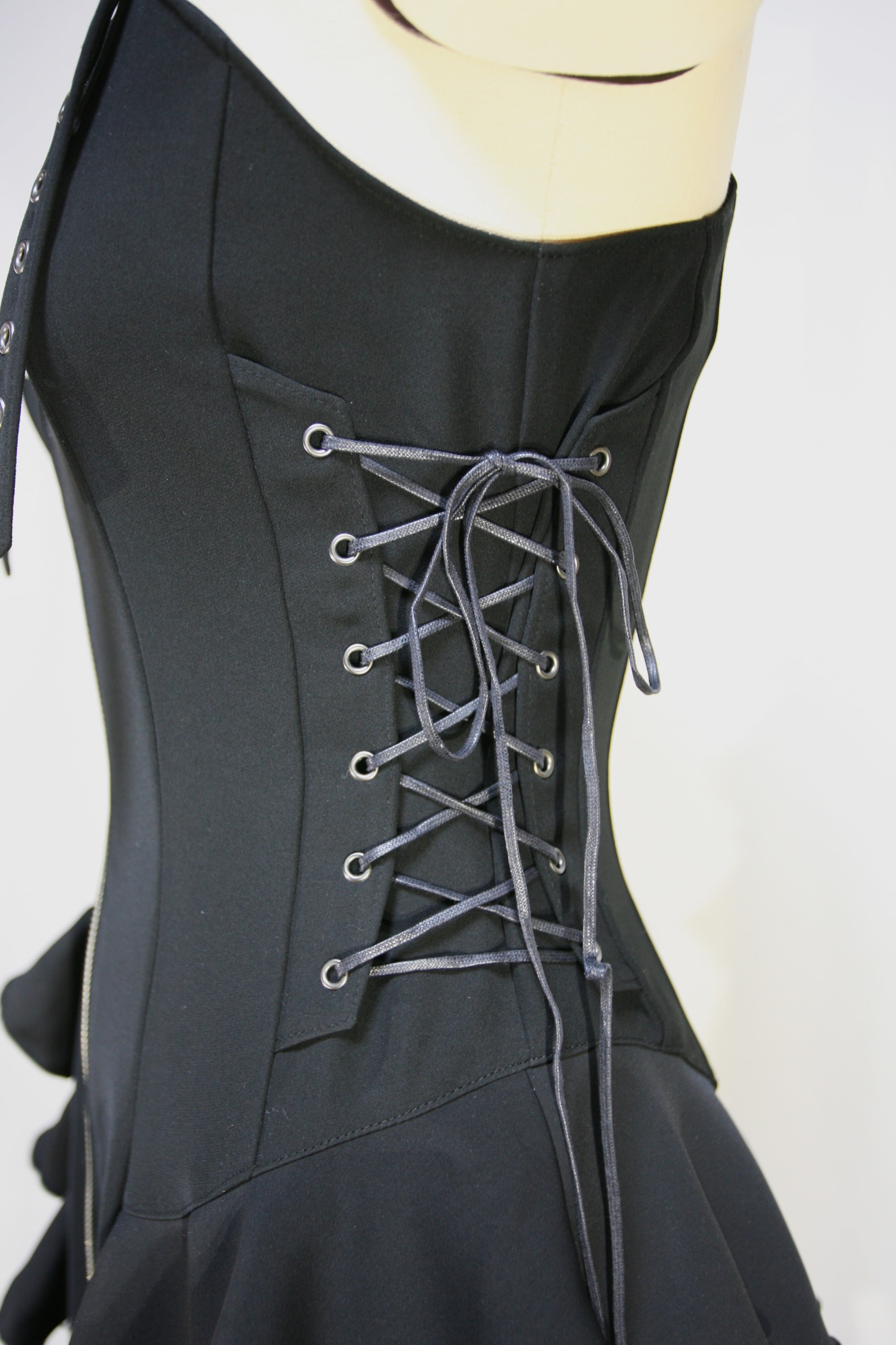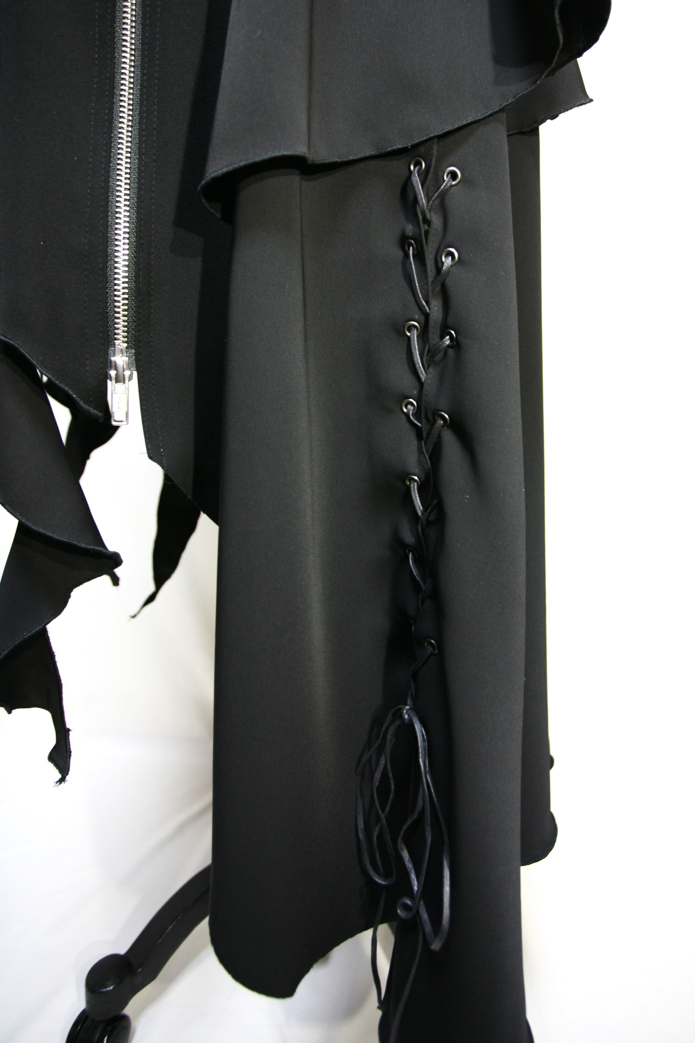 前左スカートのスリットにハトメを開けていて、編み上げになっています。