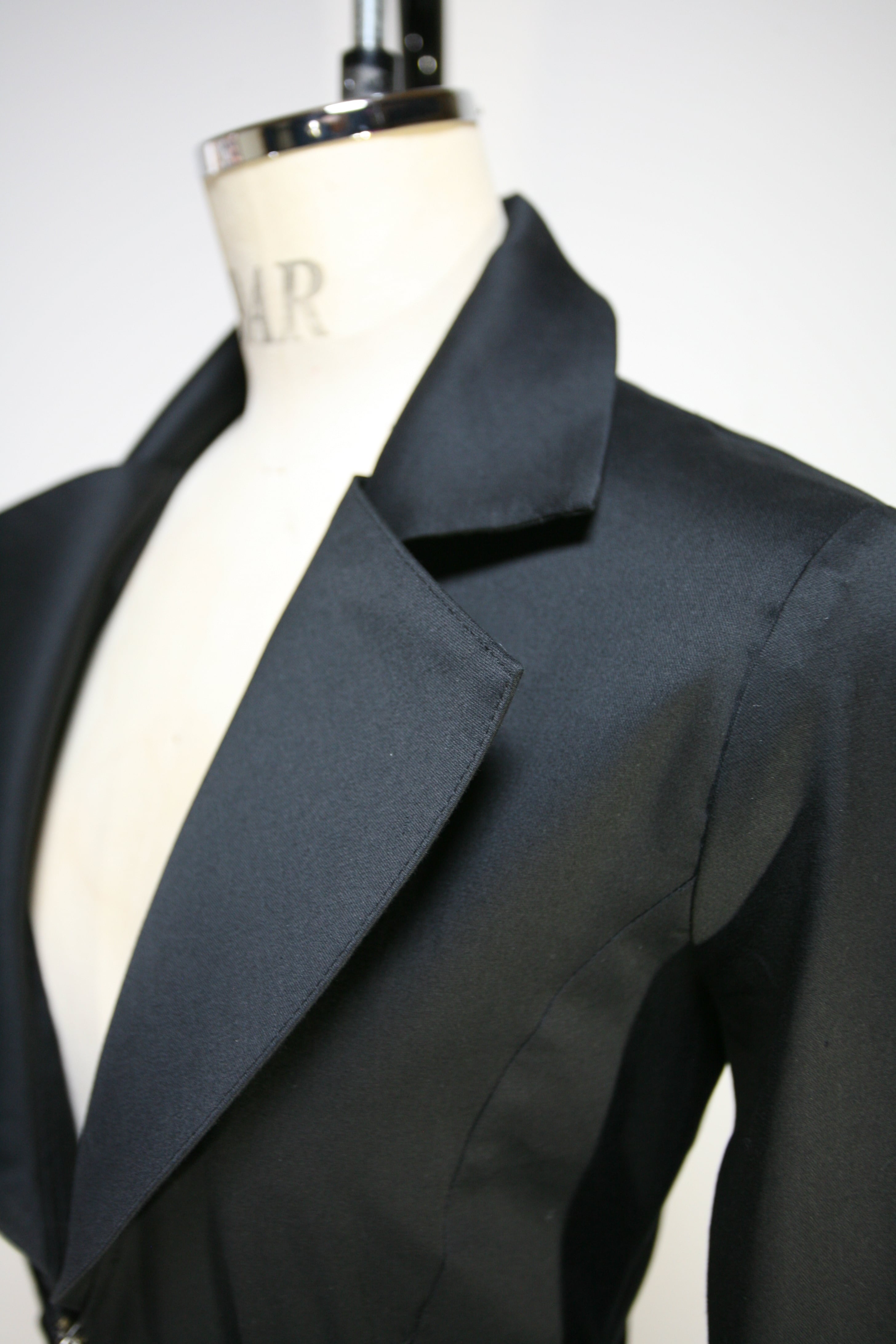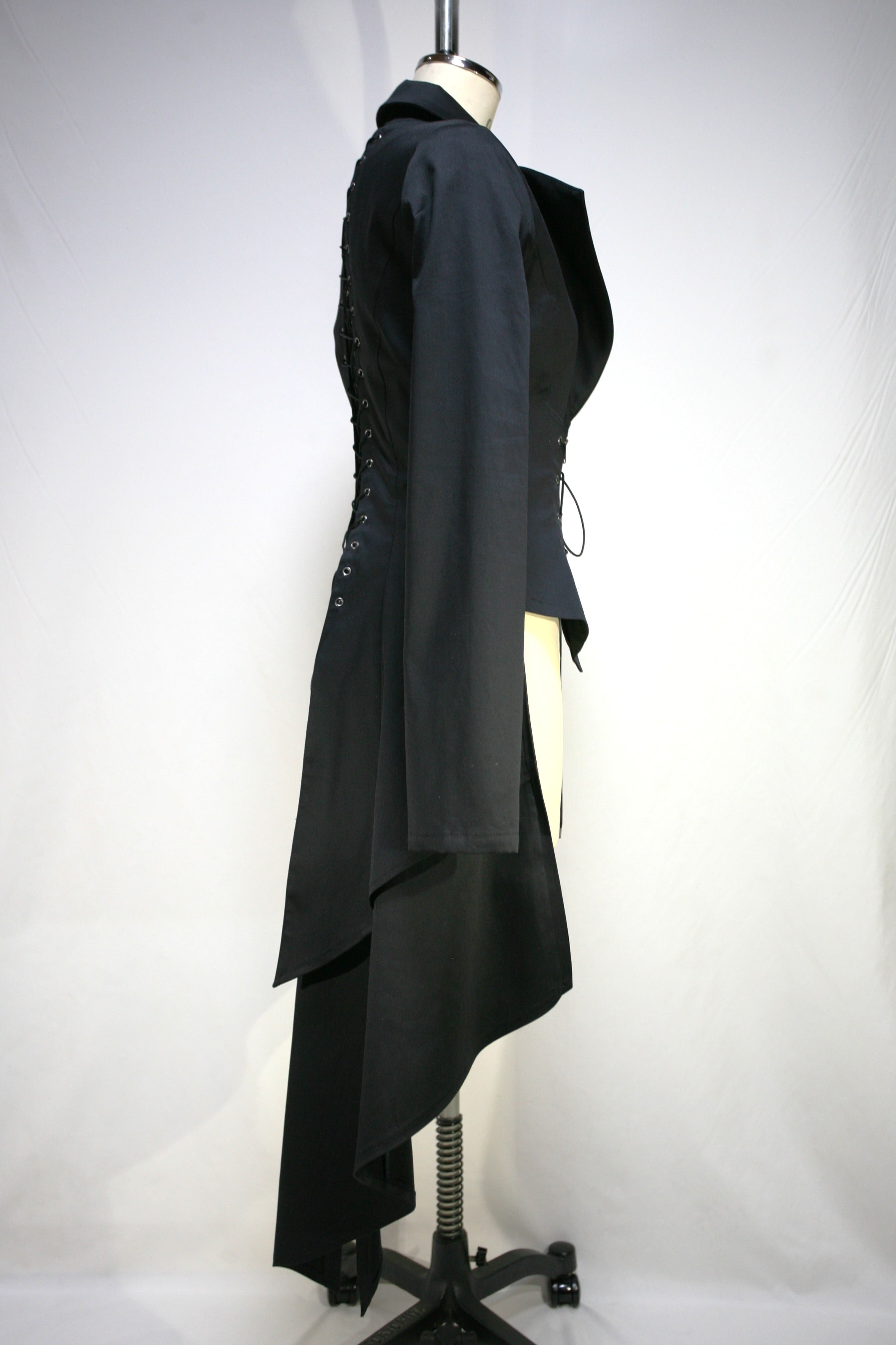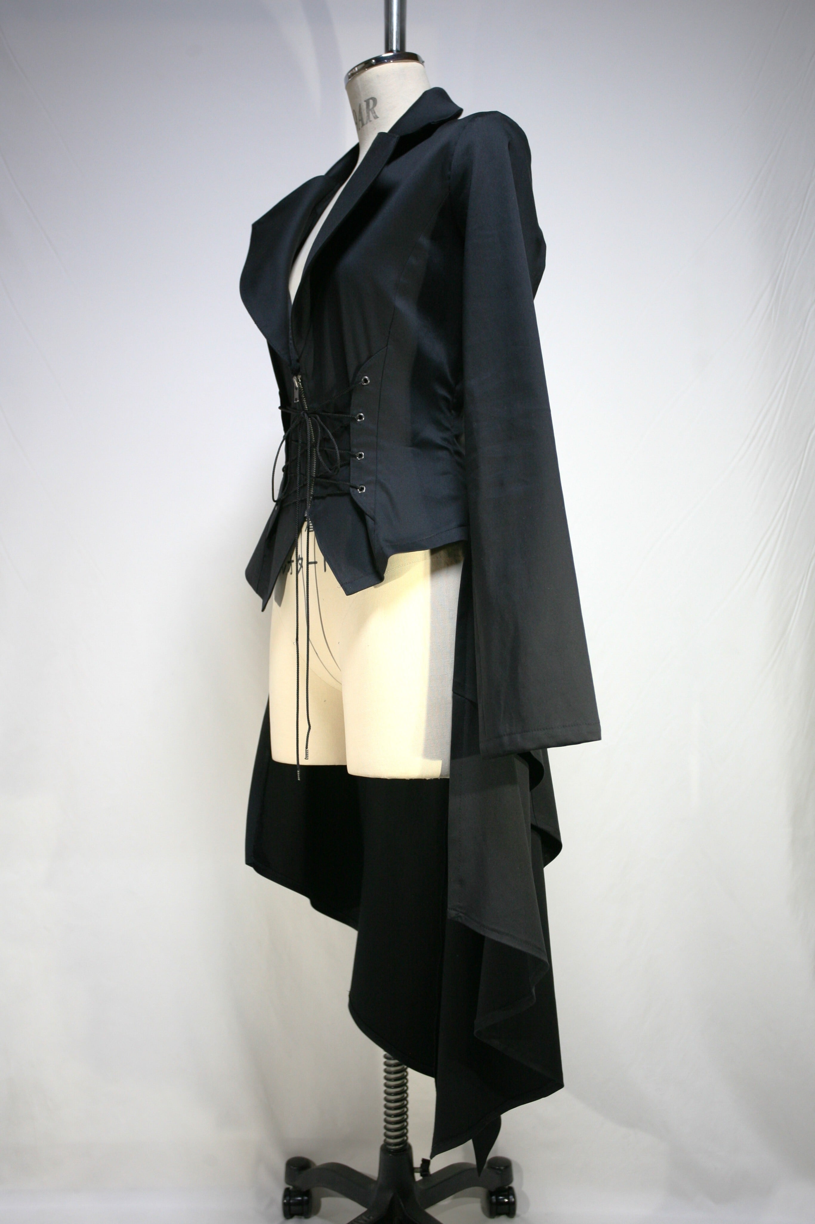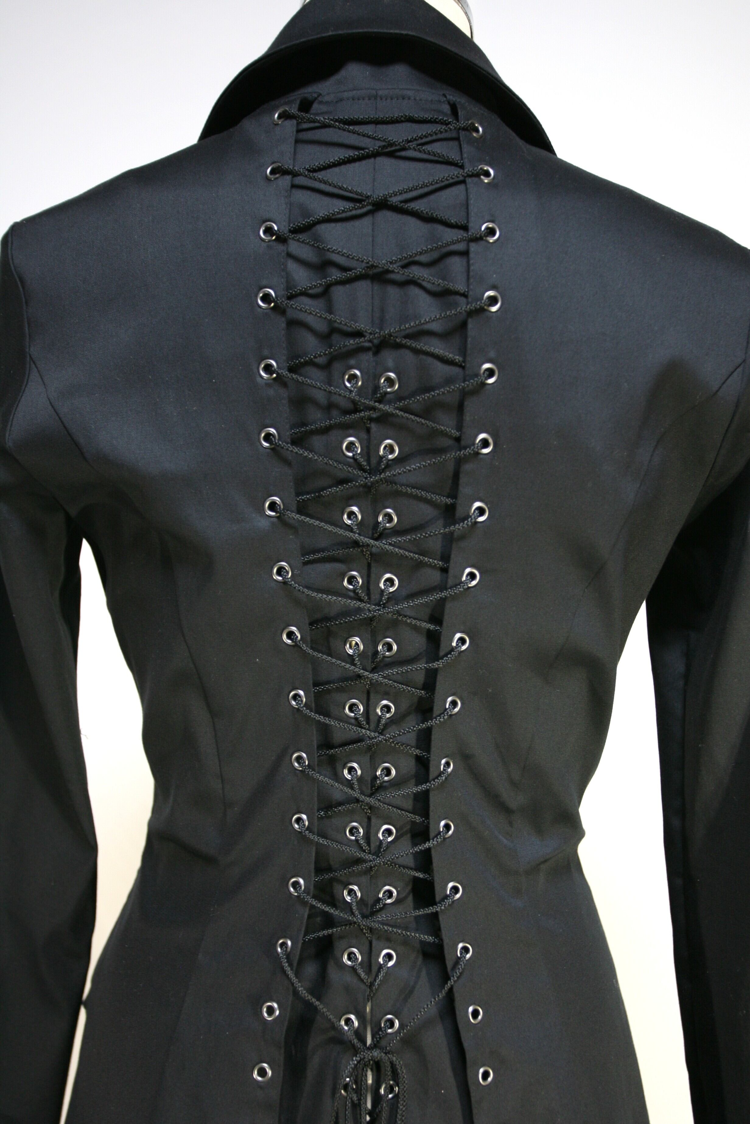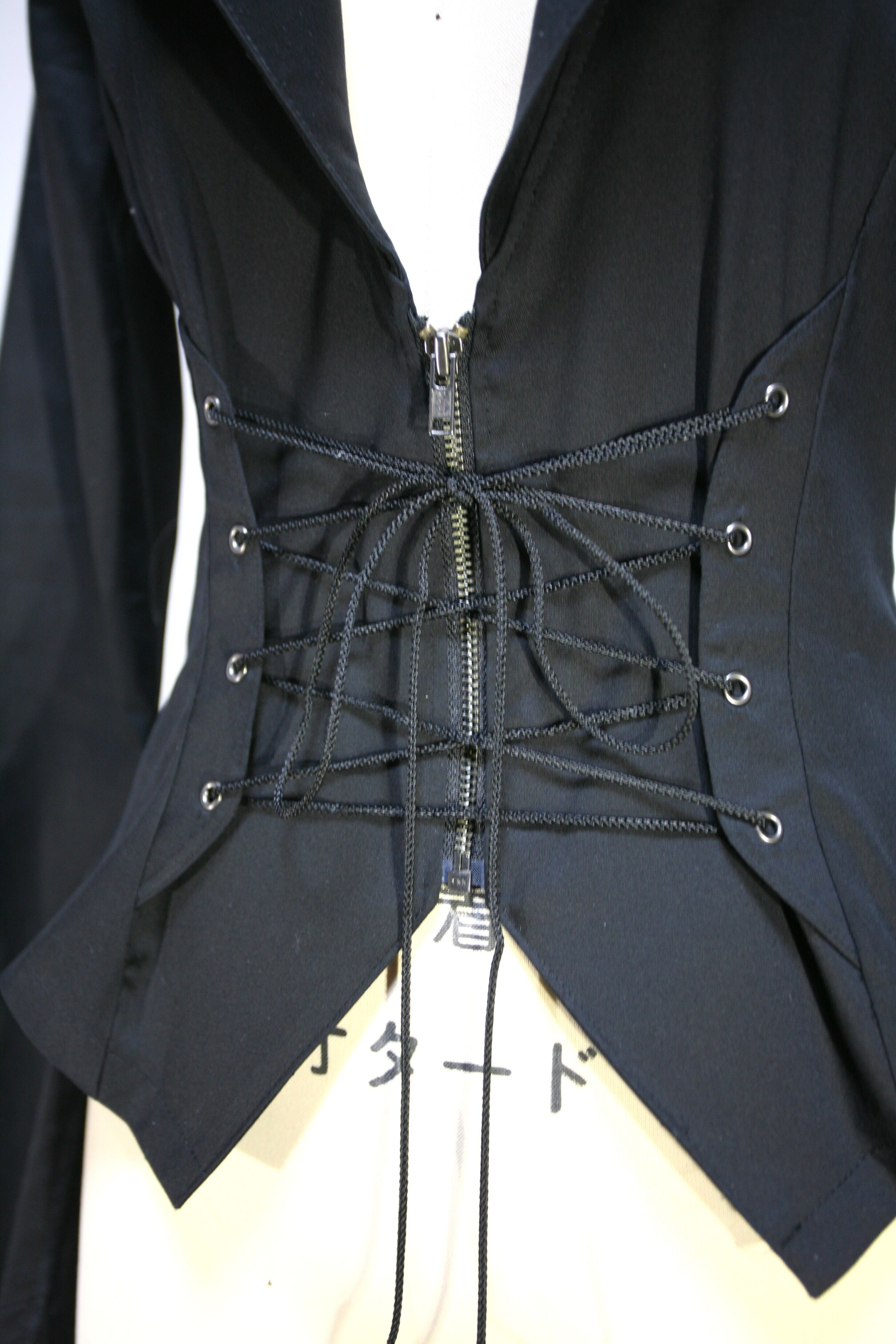 後中心は108㎝のスリット開きと後身頃に重ねたフラシ布は、ハトメを開けて編み上げになっています。