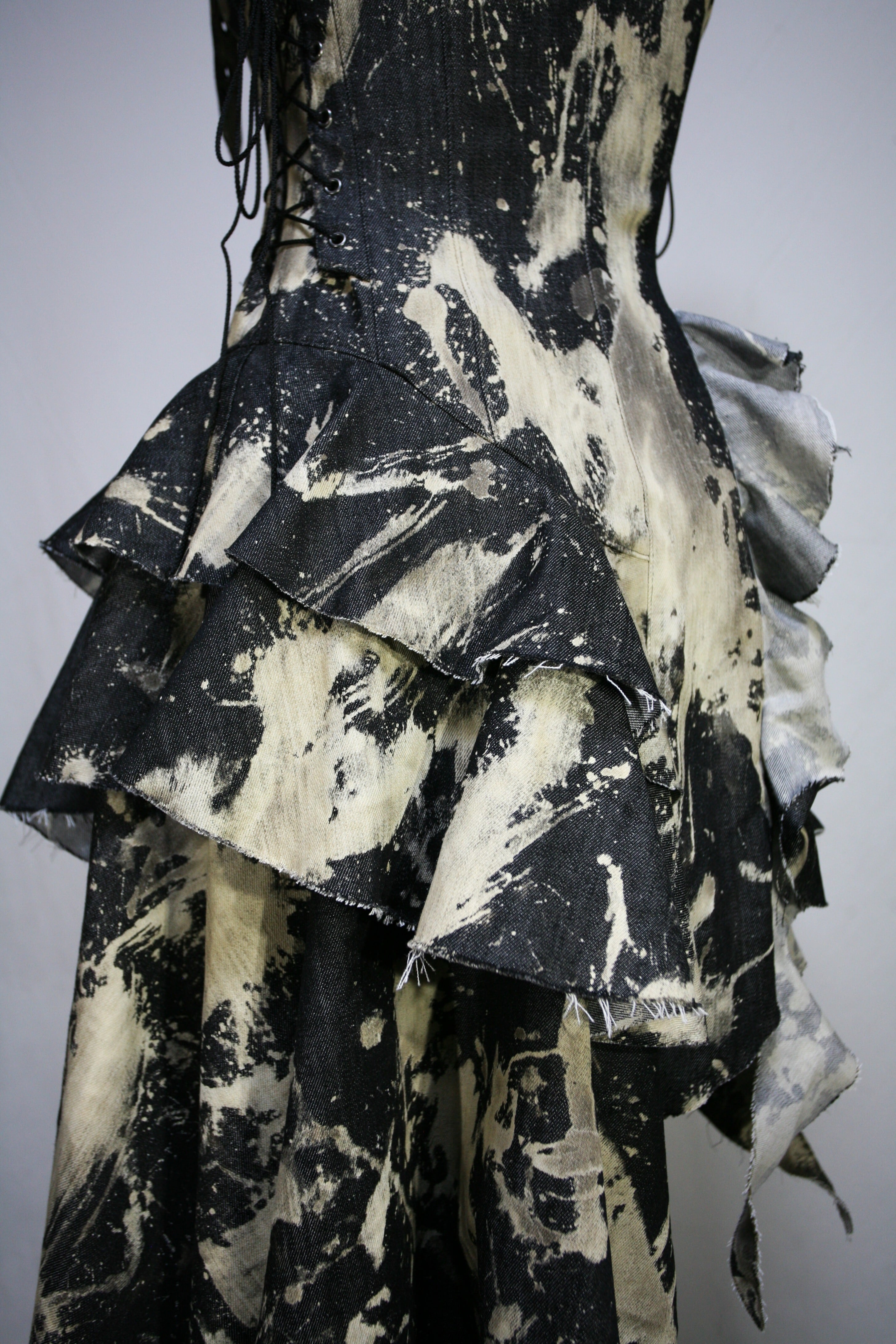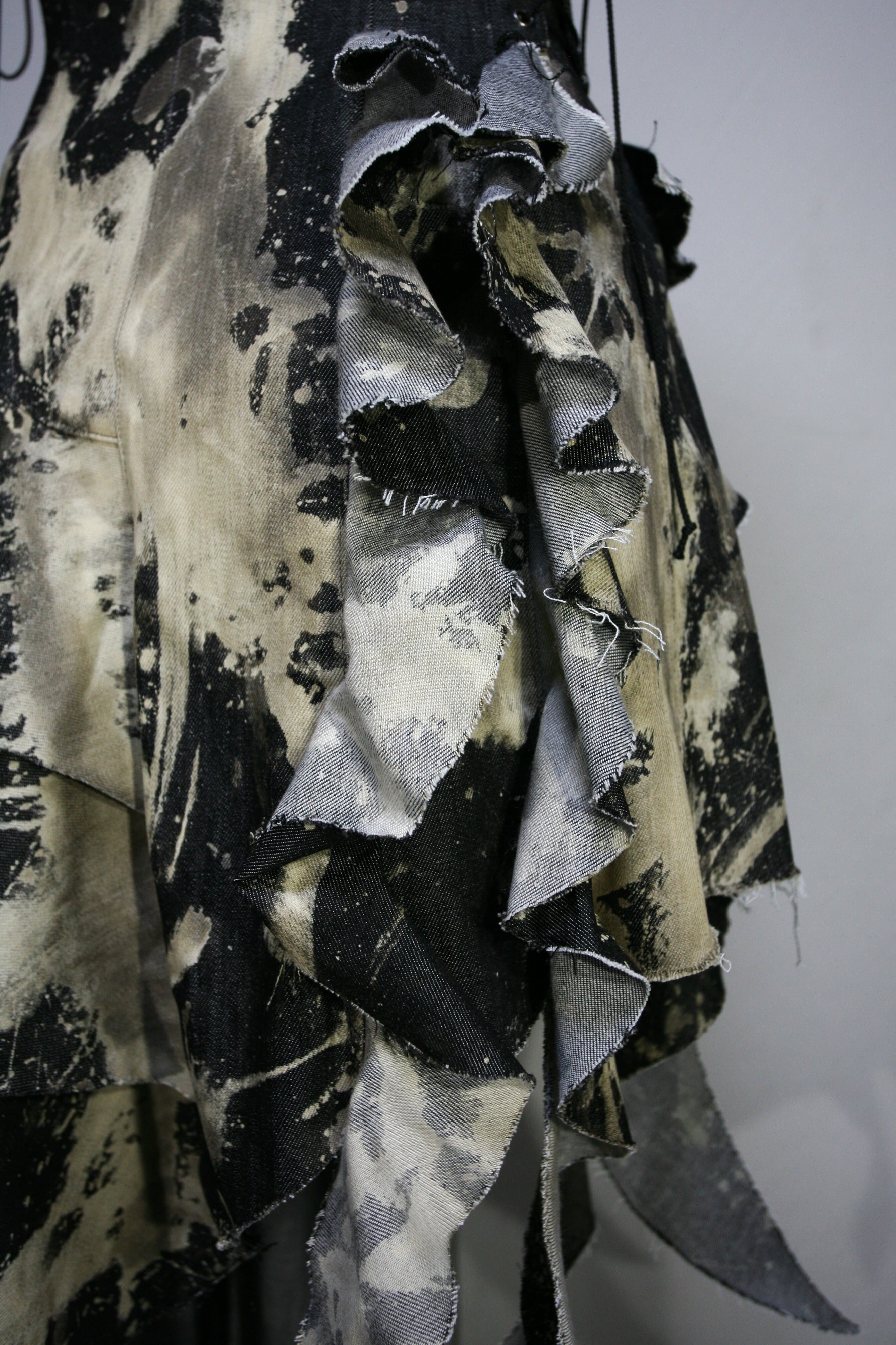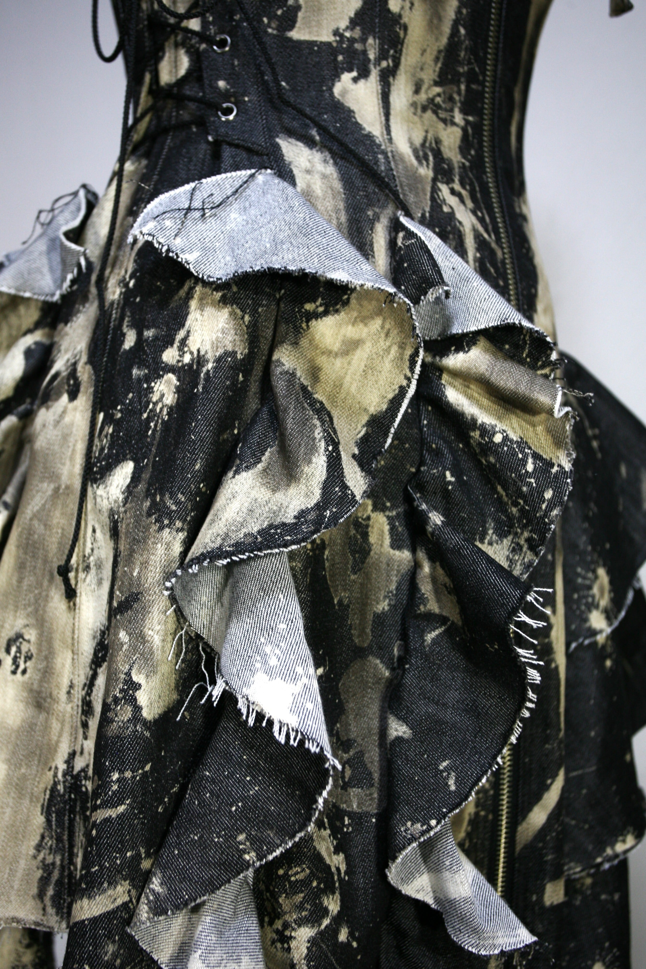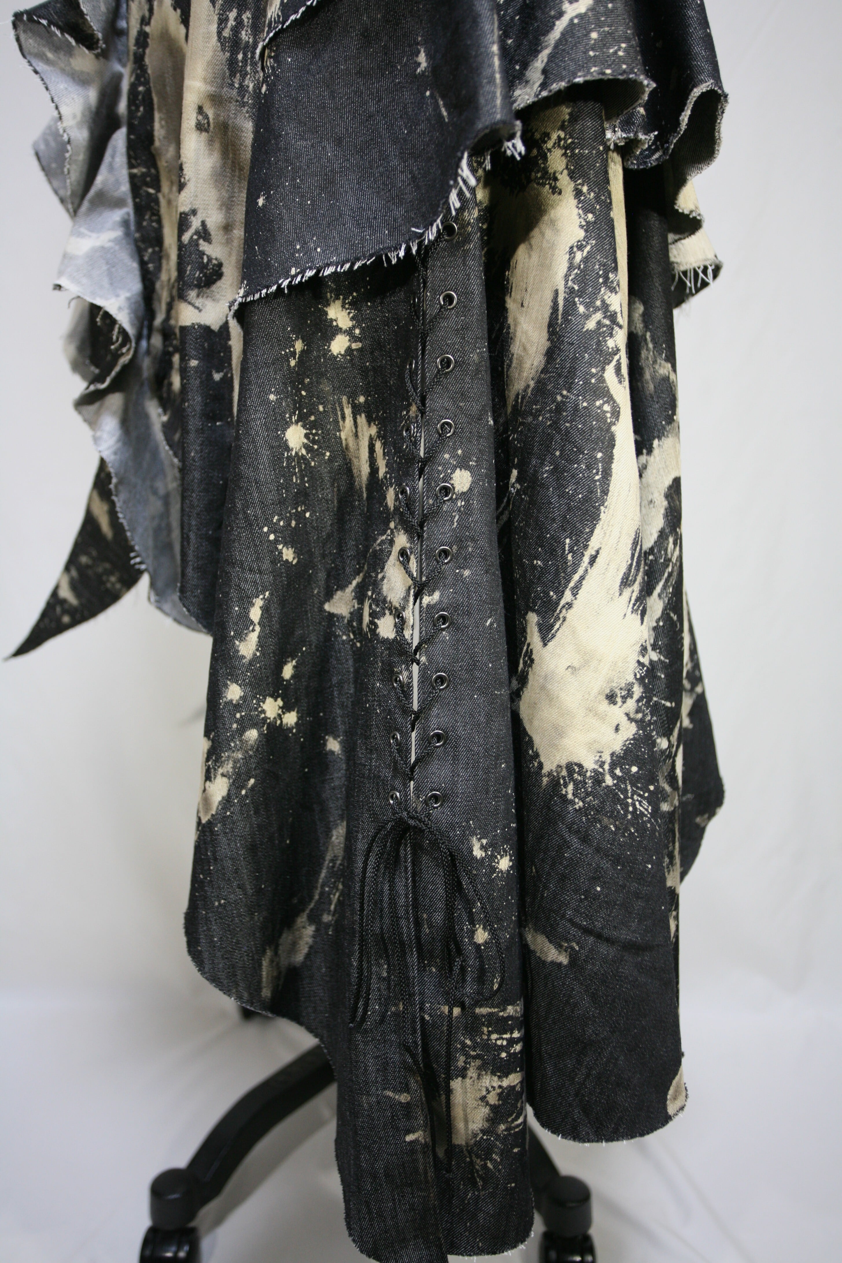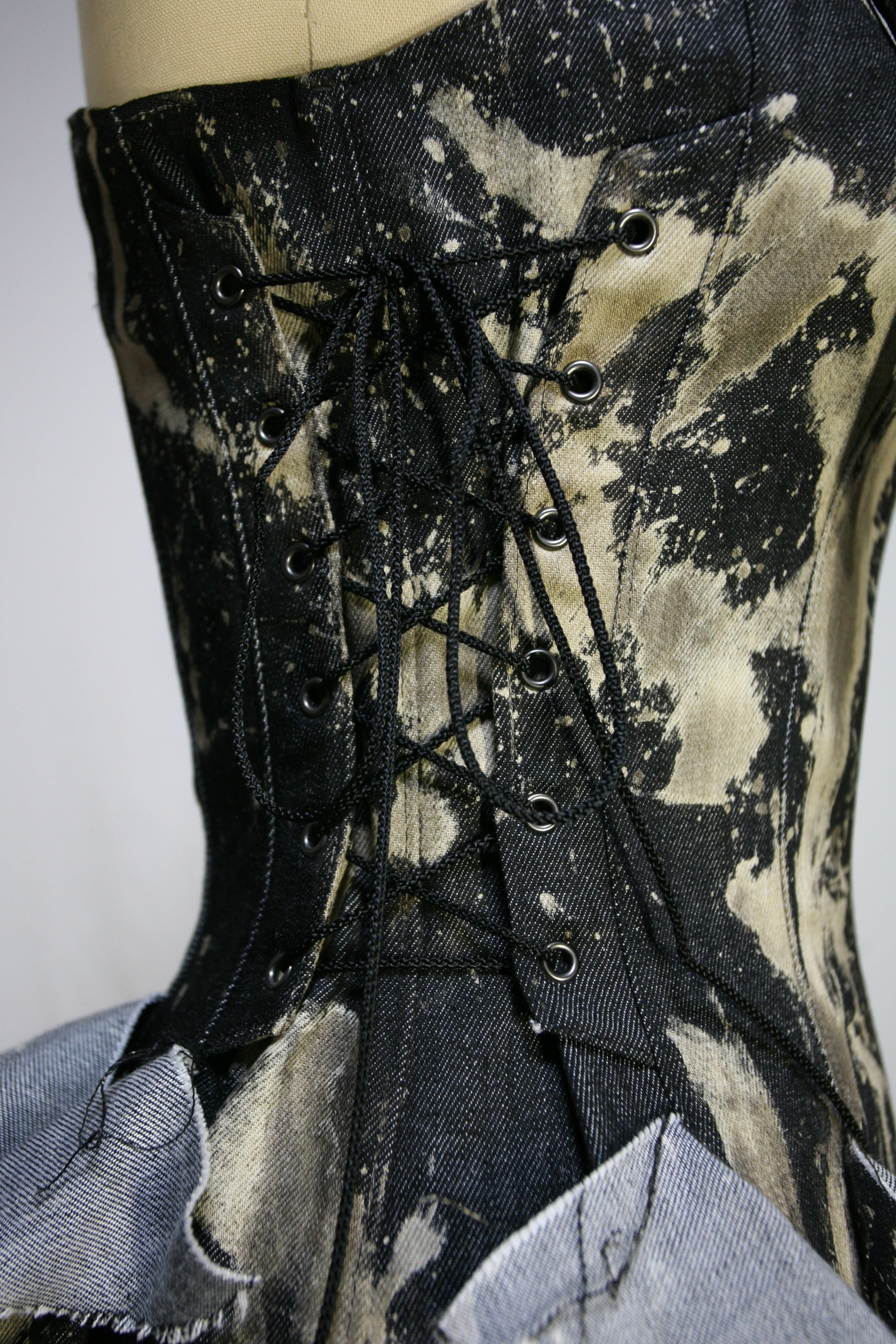 表生地はブラックデニムを部分的にブリーチしています。