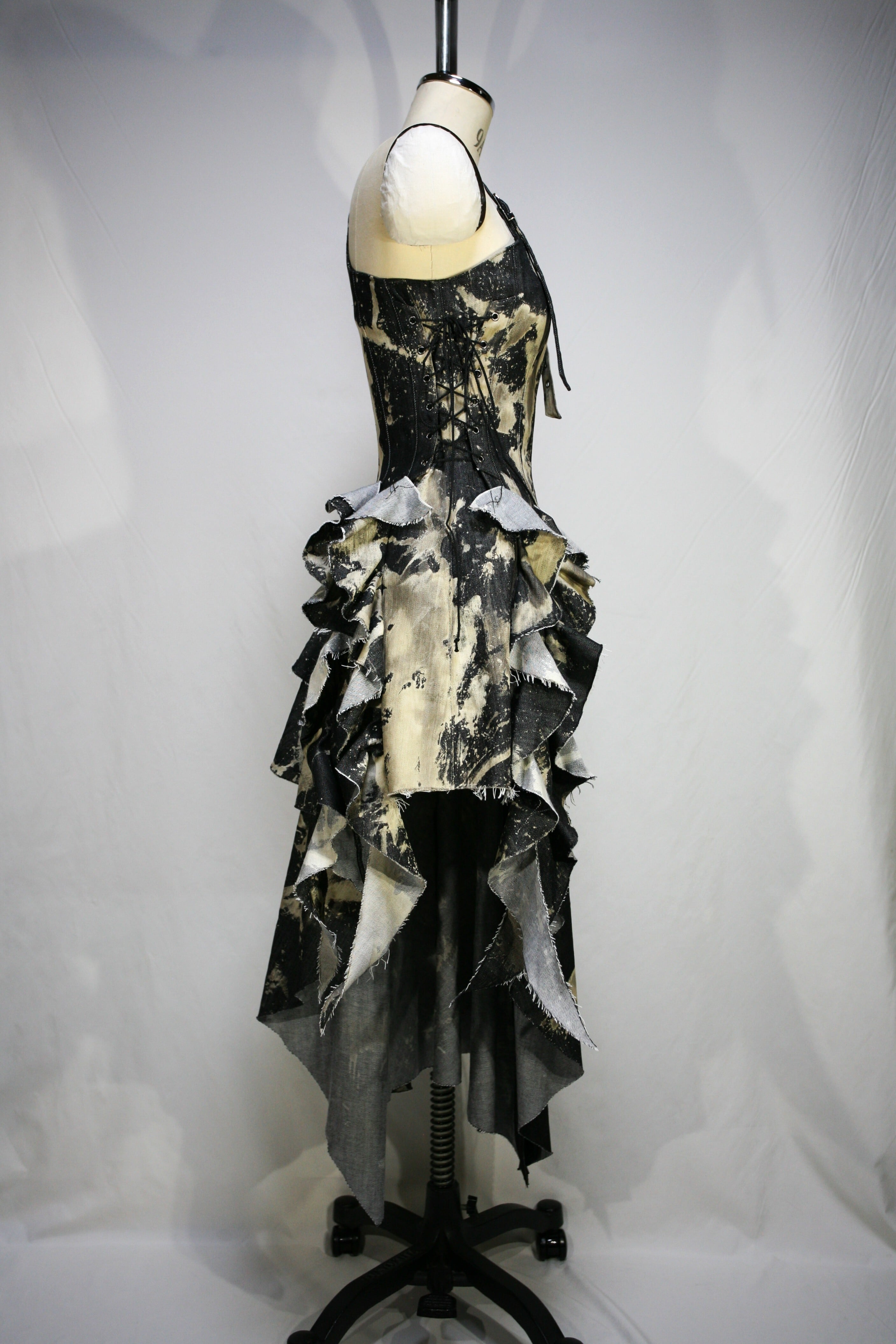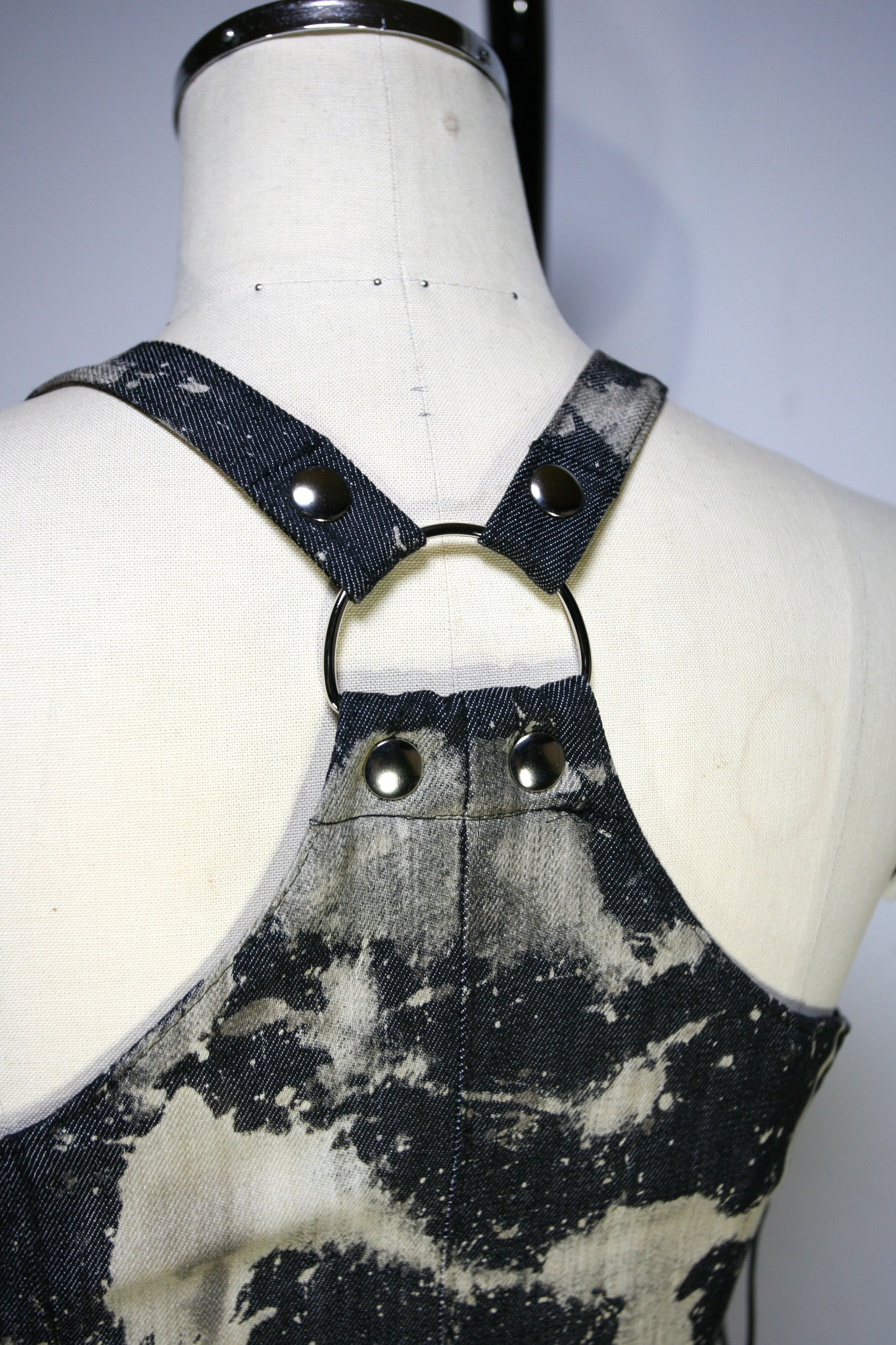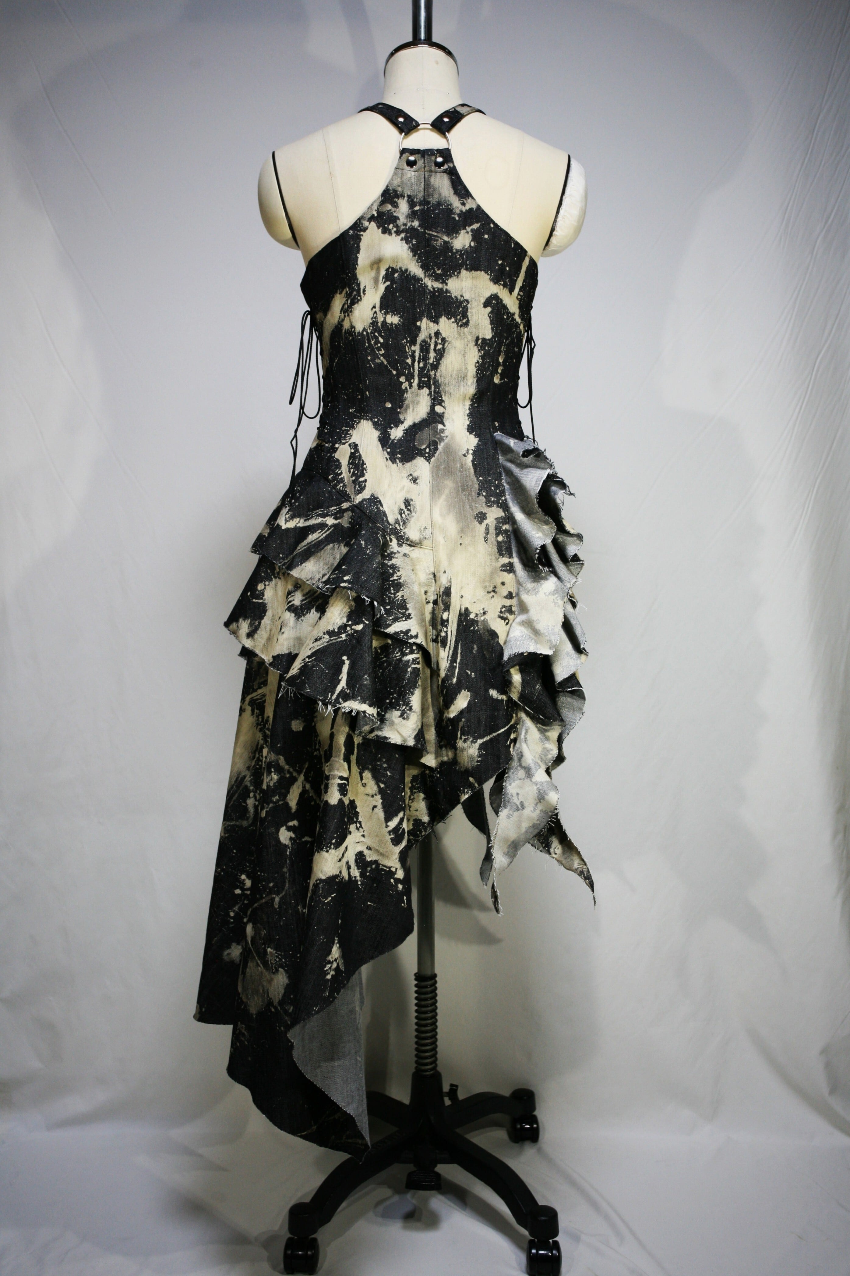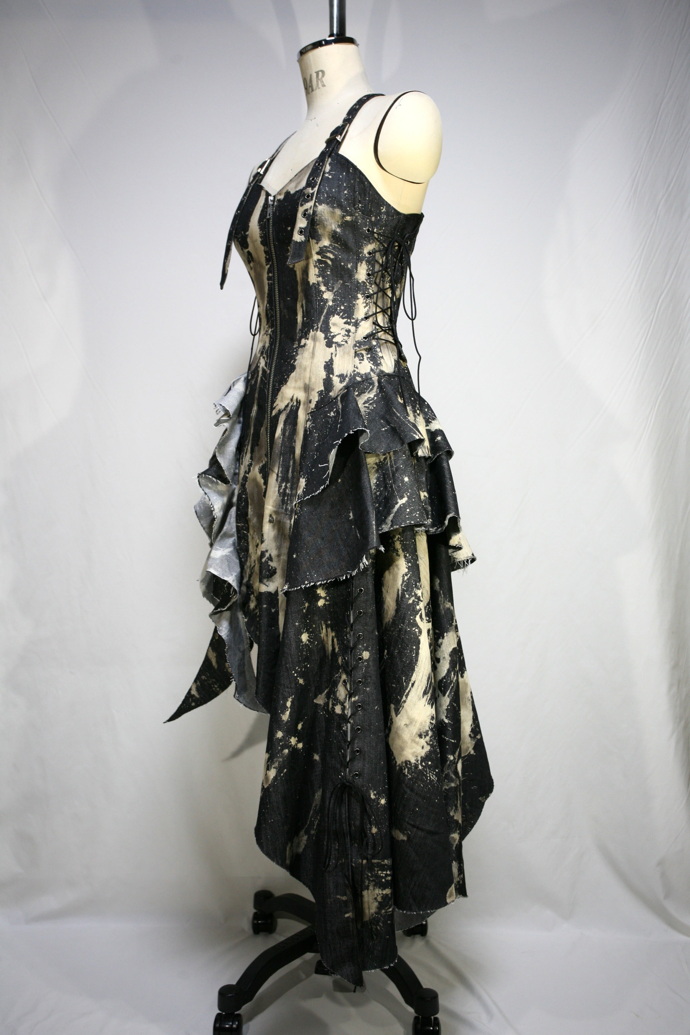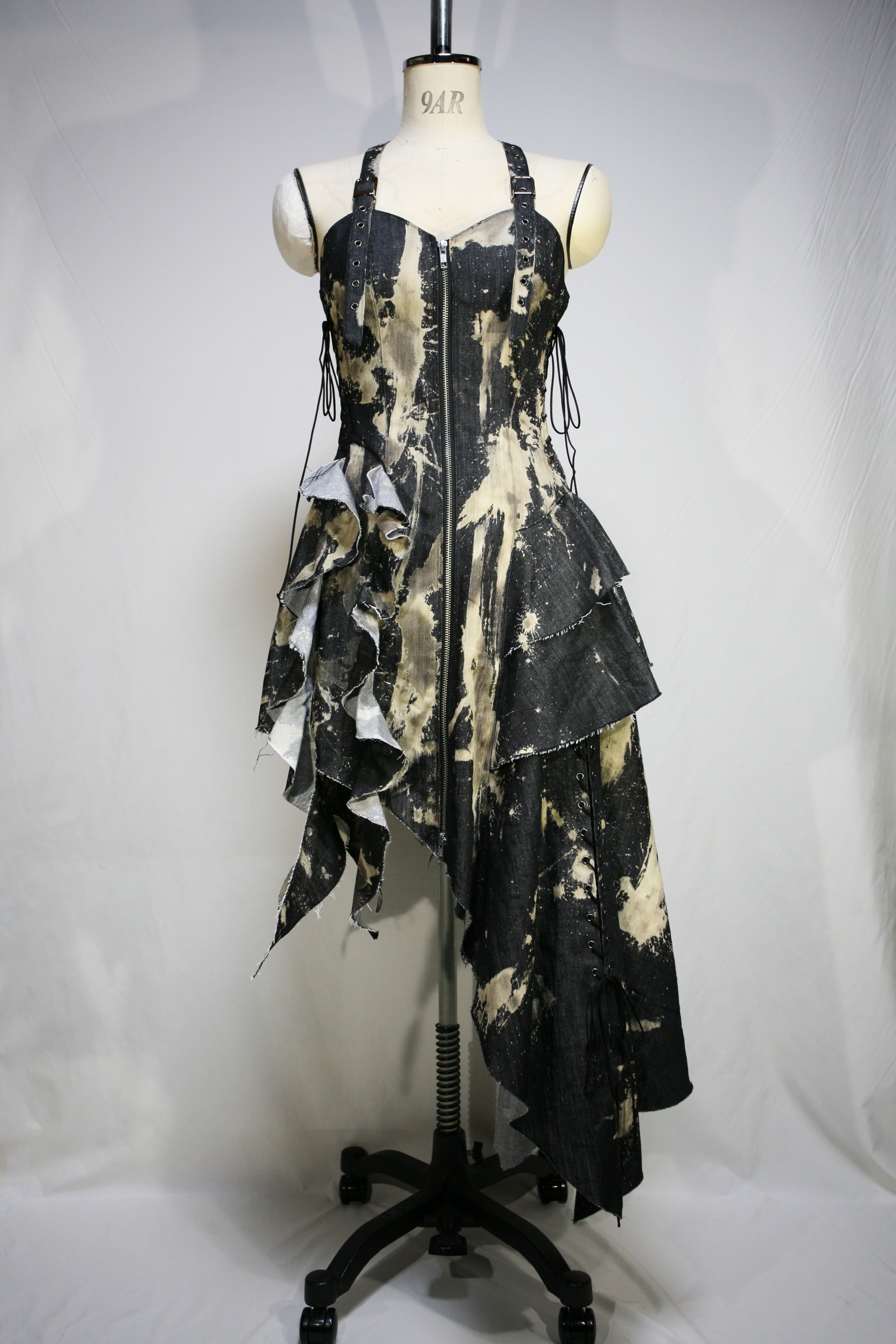 表生地はブラックデニムを部分的にブリーチしています。