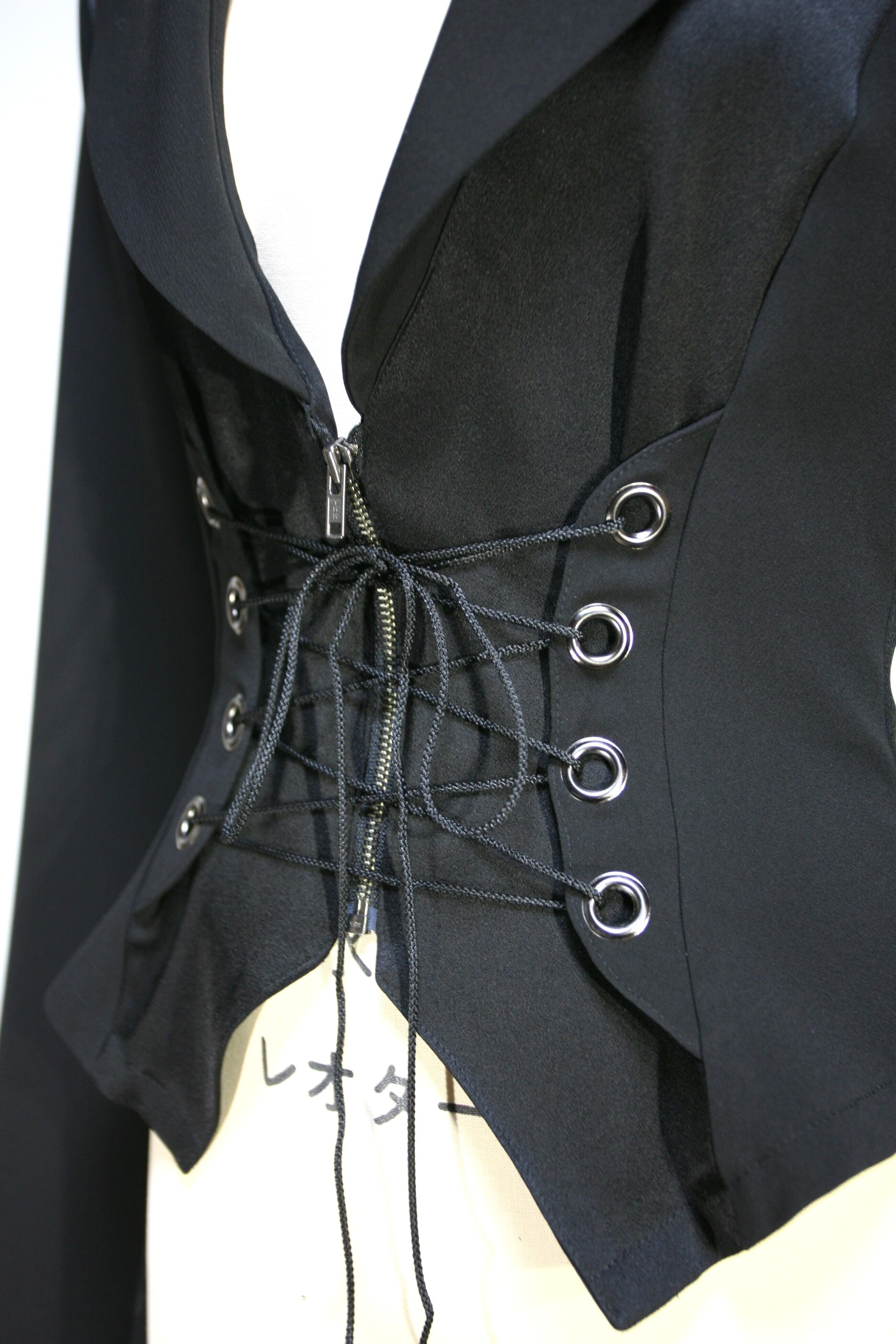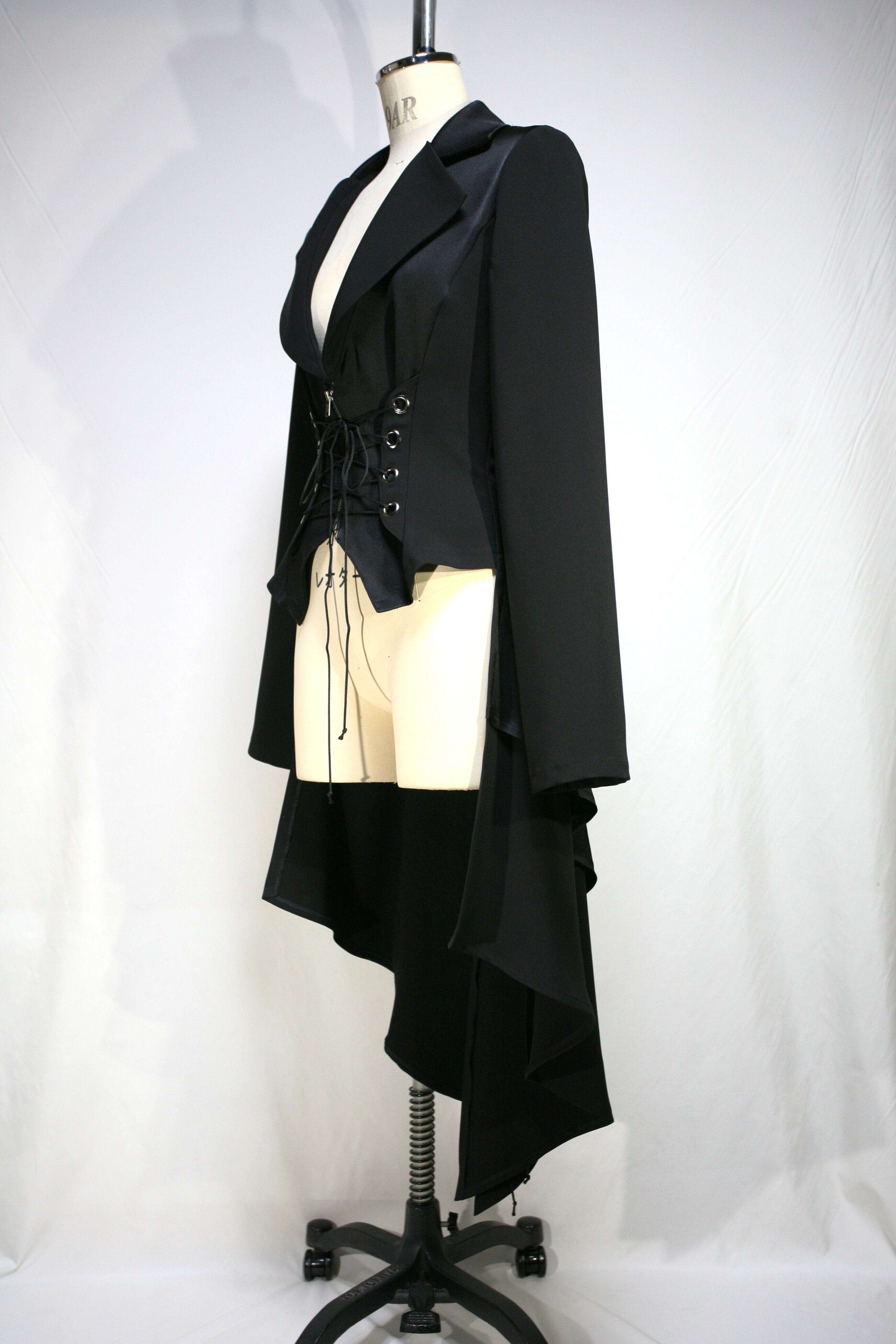 261A204C サテン生地を配色に使った前後編み上げの燕尾ジャケット