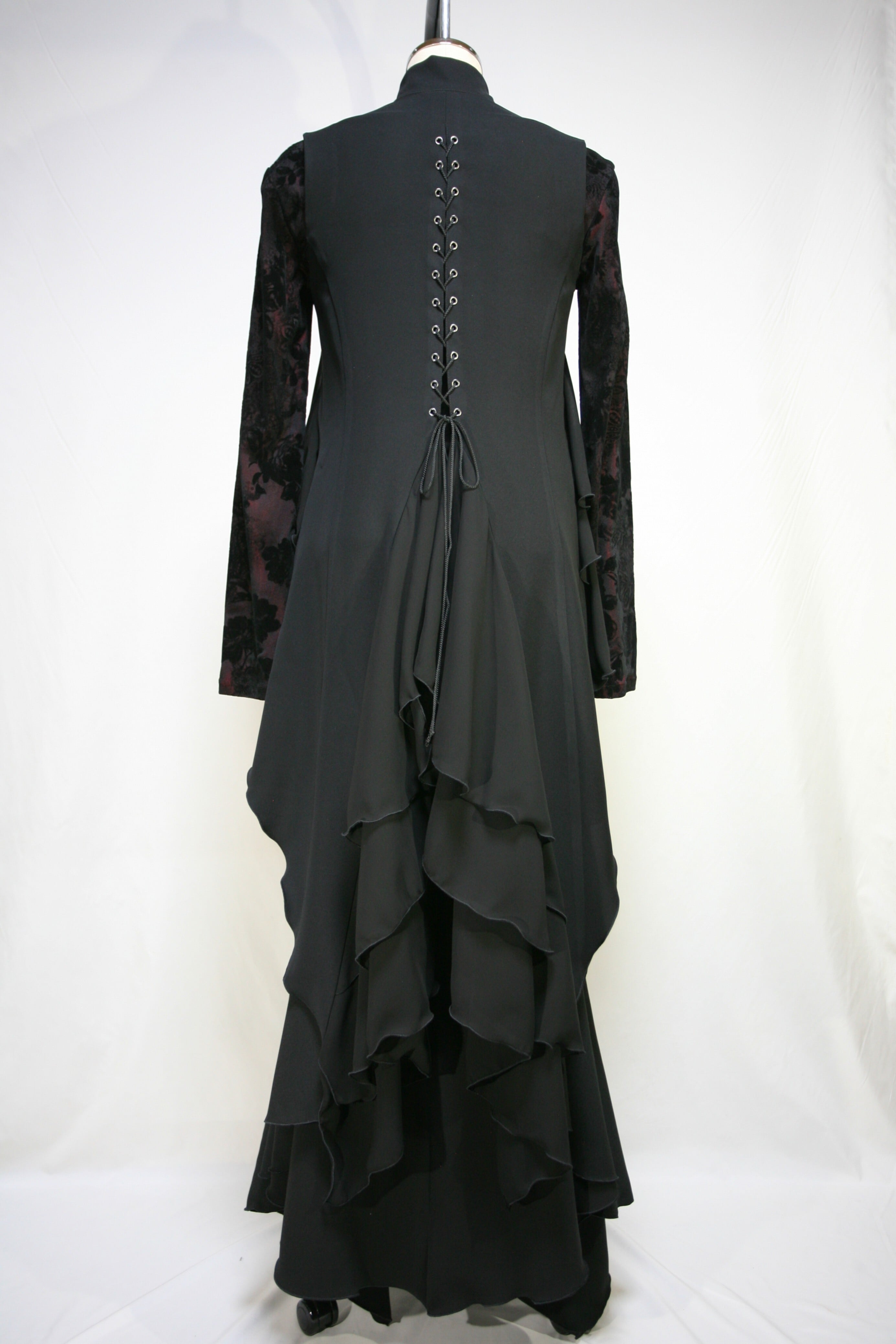 両脇に挟んだ前フラシ布の編み上げでウエストのサイズを調整する事が出来ます。