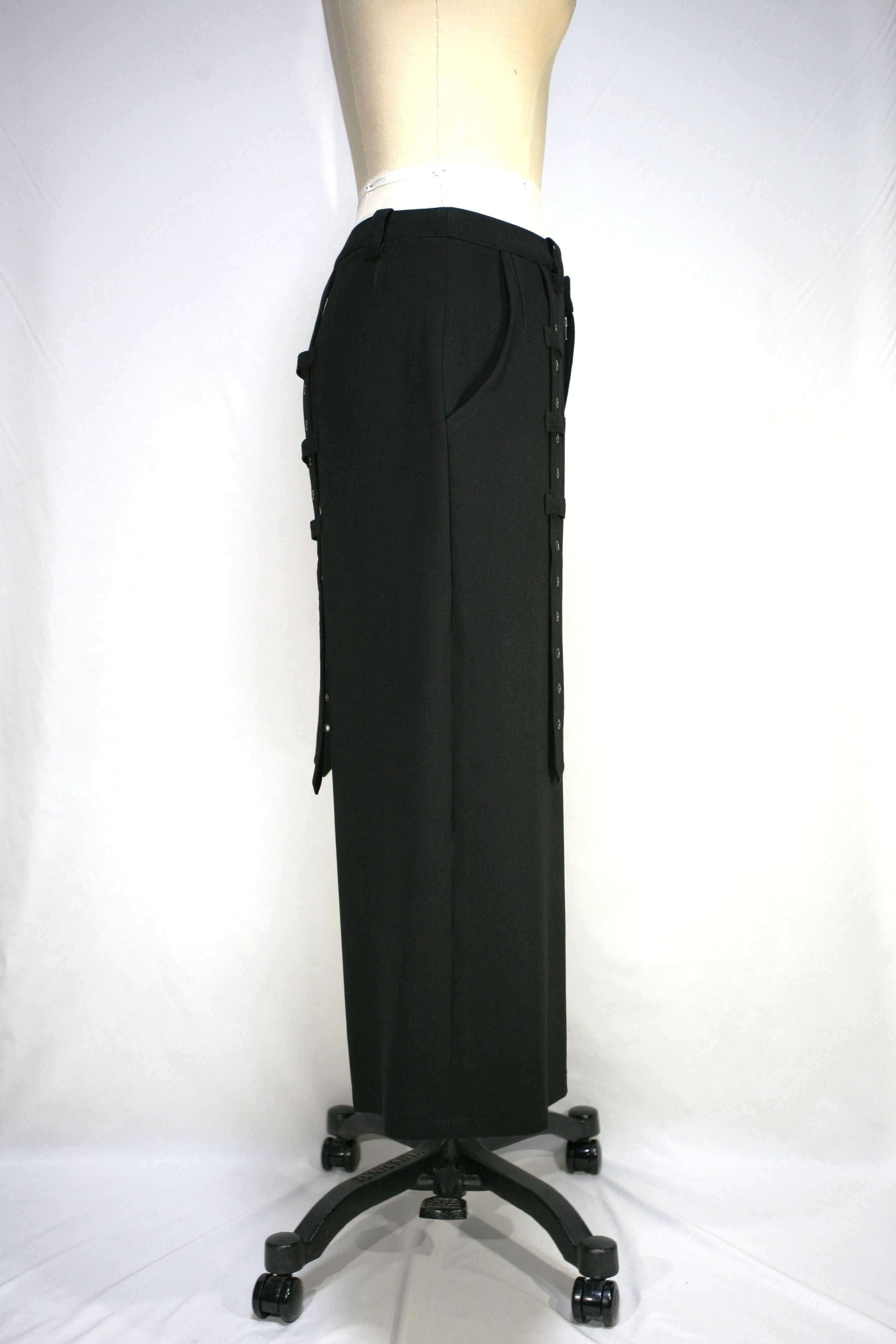 前後のベルトを下パンツに付いた25㎜バックルに通す事で、全体の股下を71㎝から3㎝刻みで調節する事が出来ます。(画像の股下は80㎝)