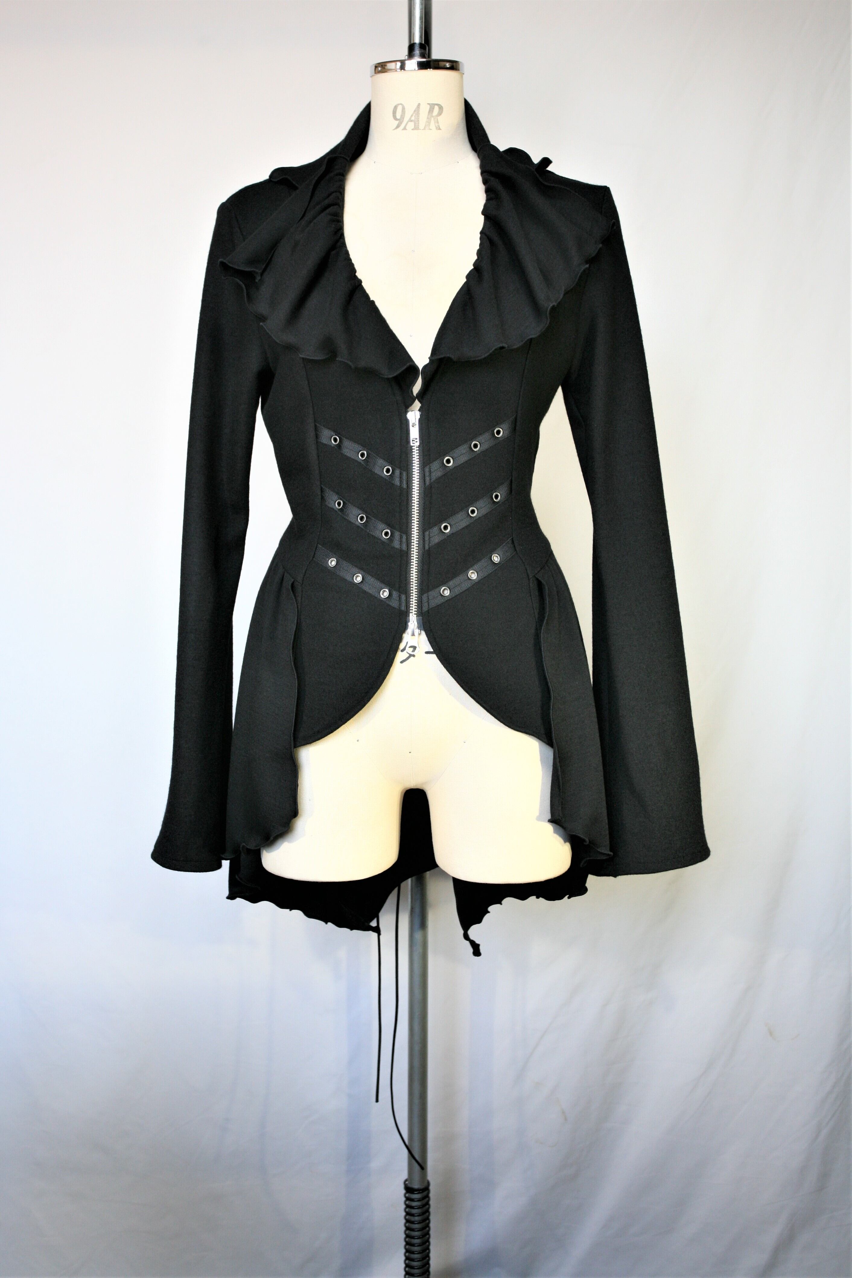両脇の切り替えにフラシ布を挟んでいて、後ろが編み上げになっているのでウエストを絞ることが出来ます。