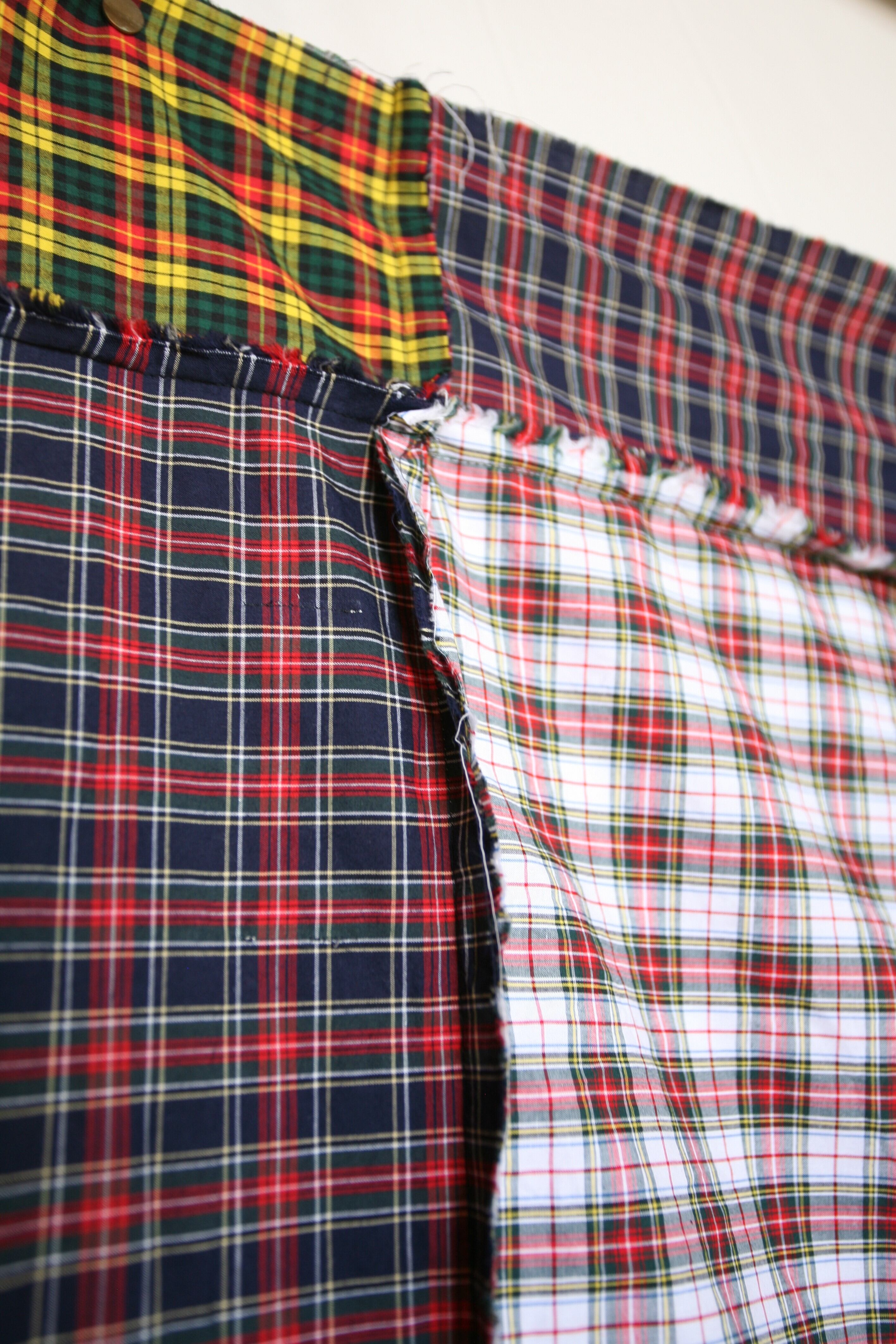 内側の白地チェック柄を紺地と黄色地のチェック柄で周囲を囲んでいます。