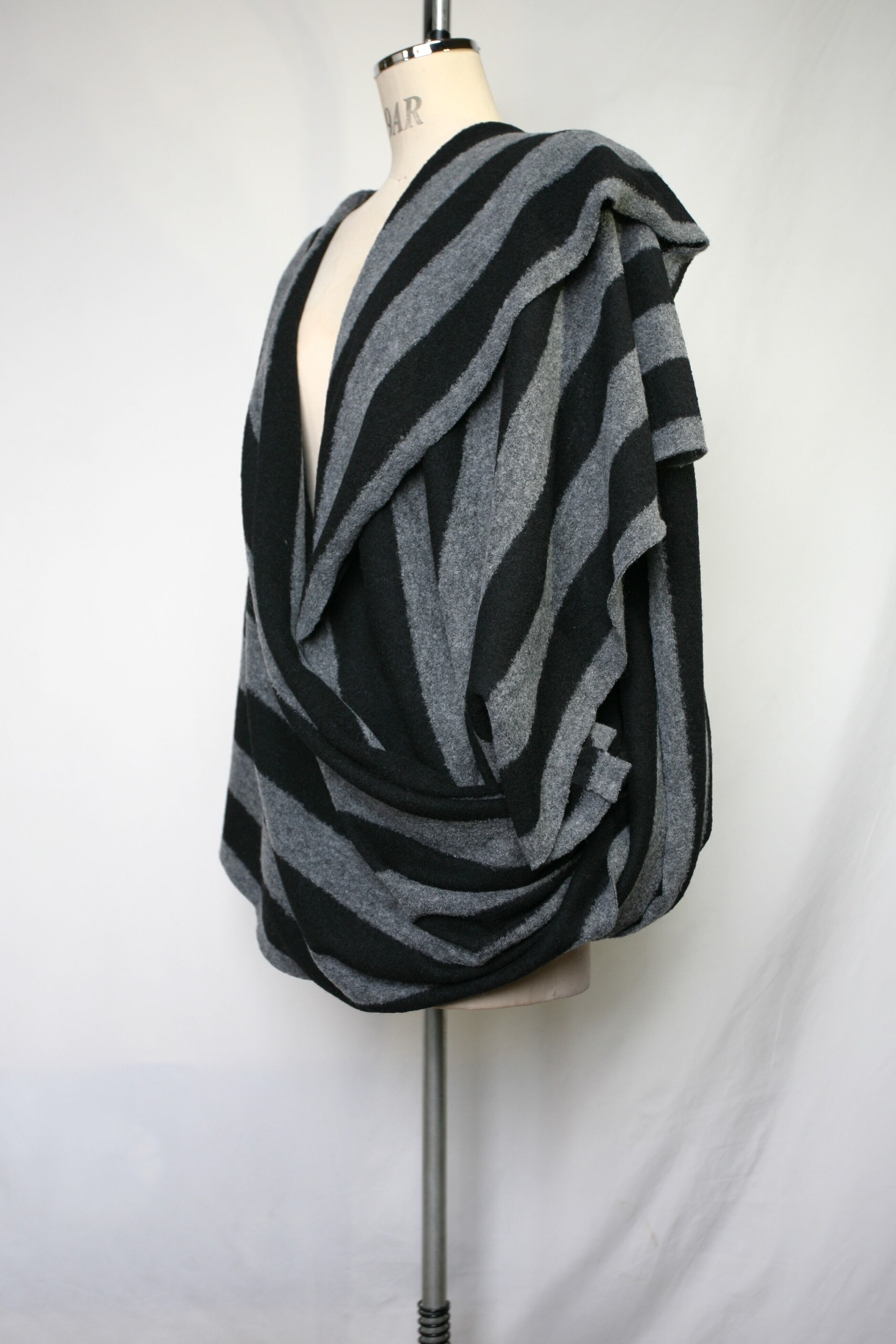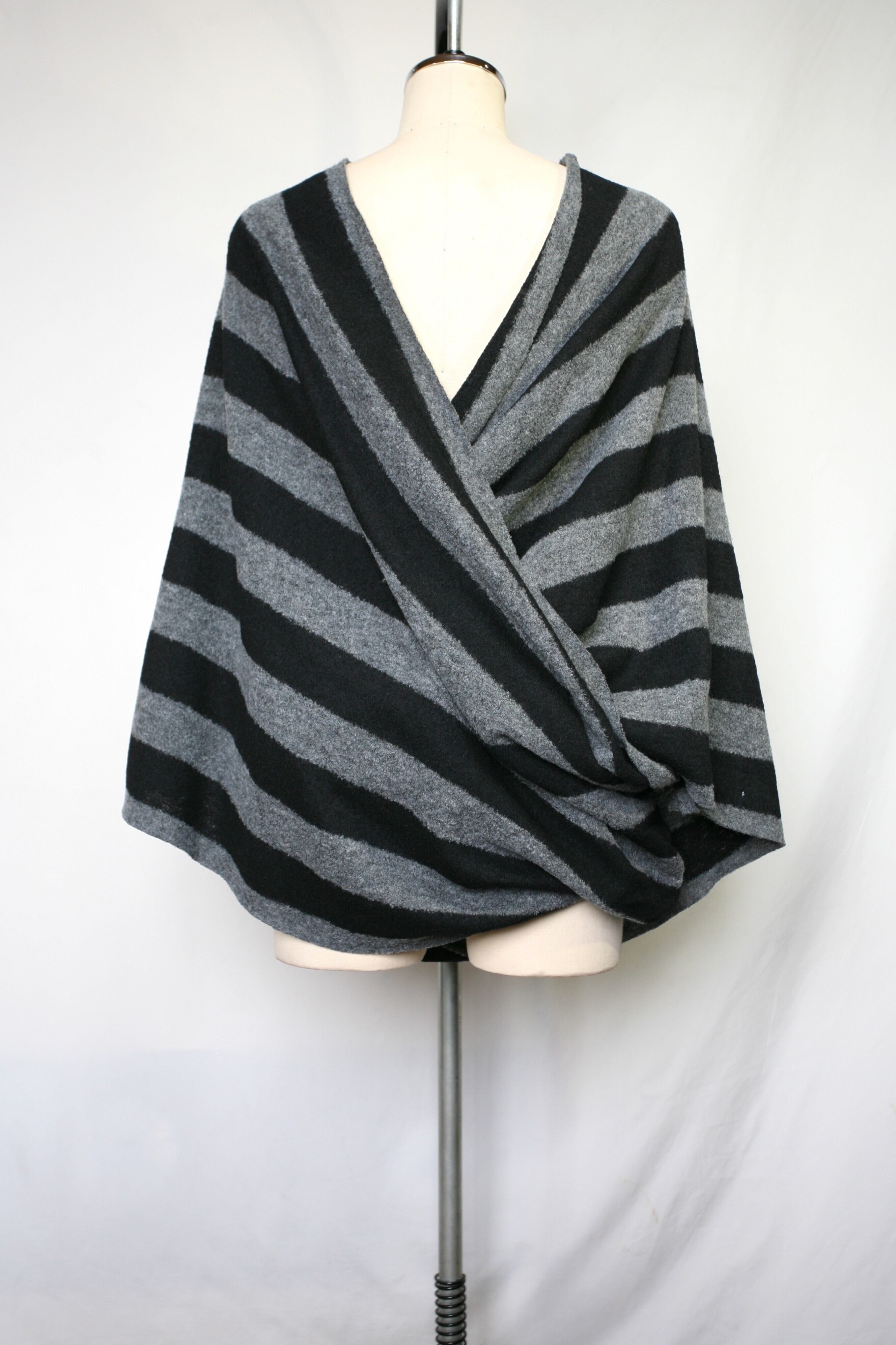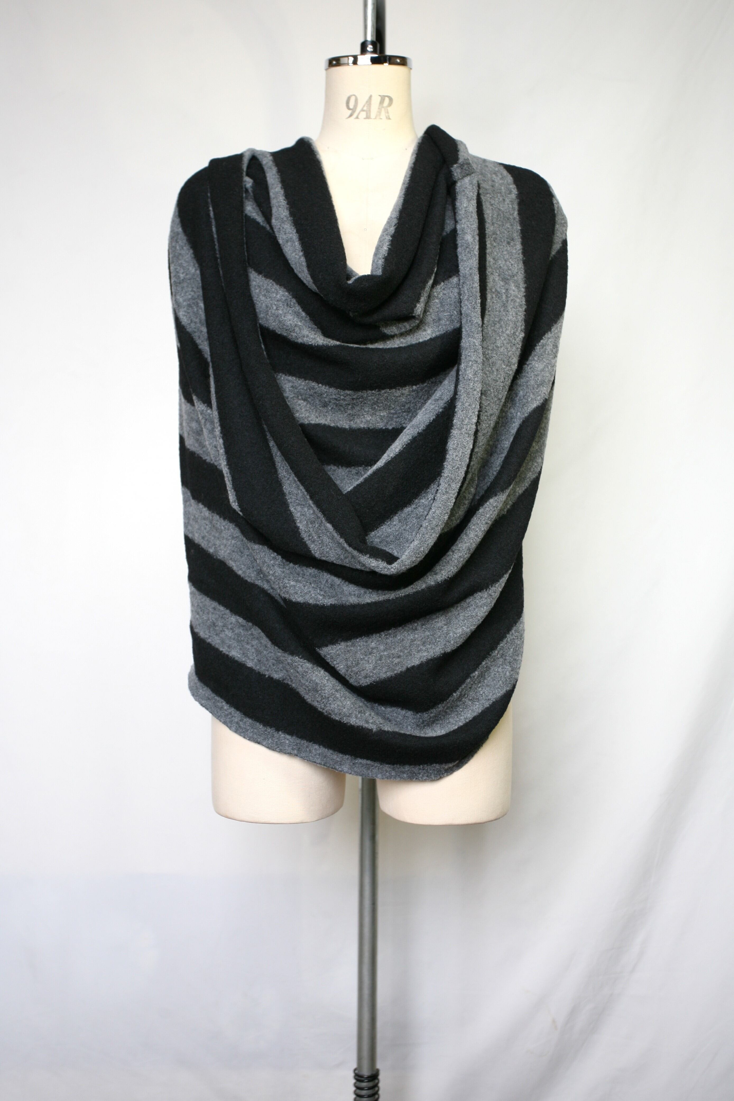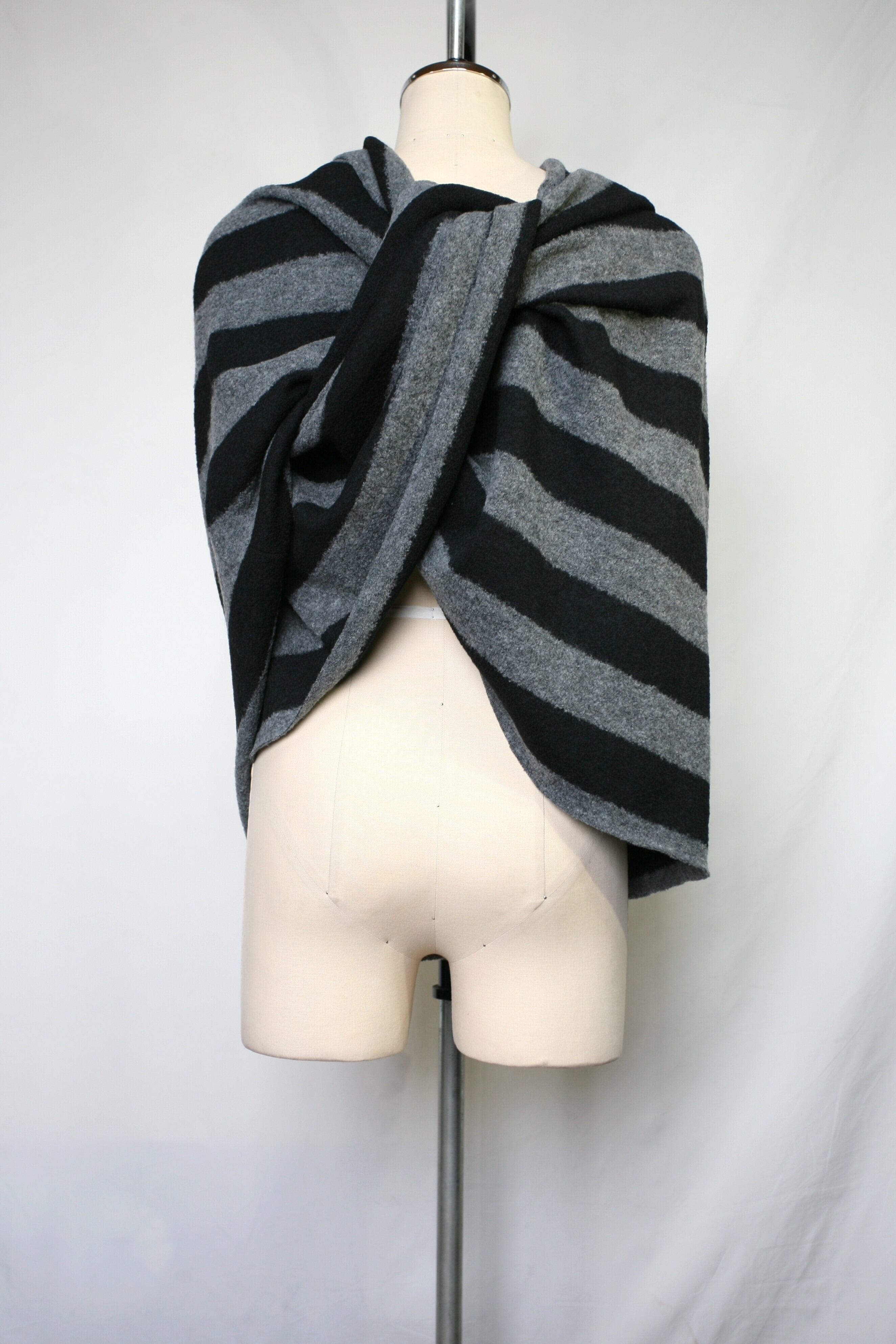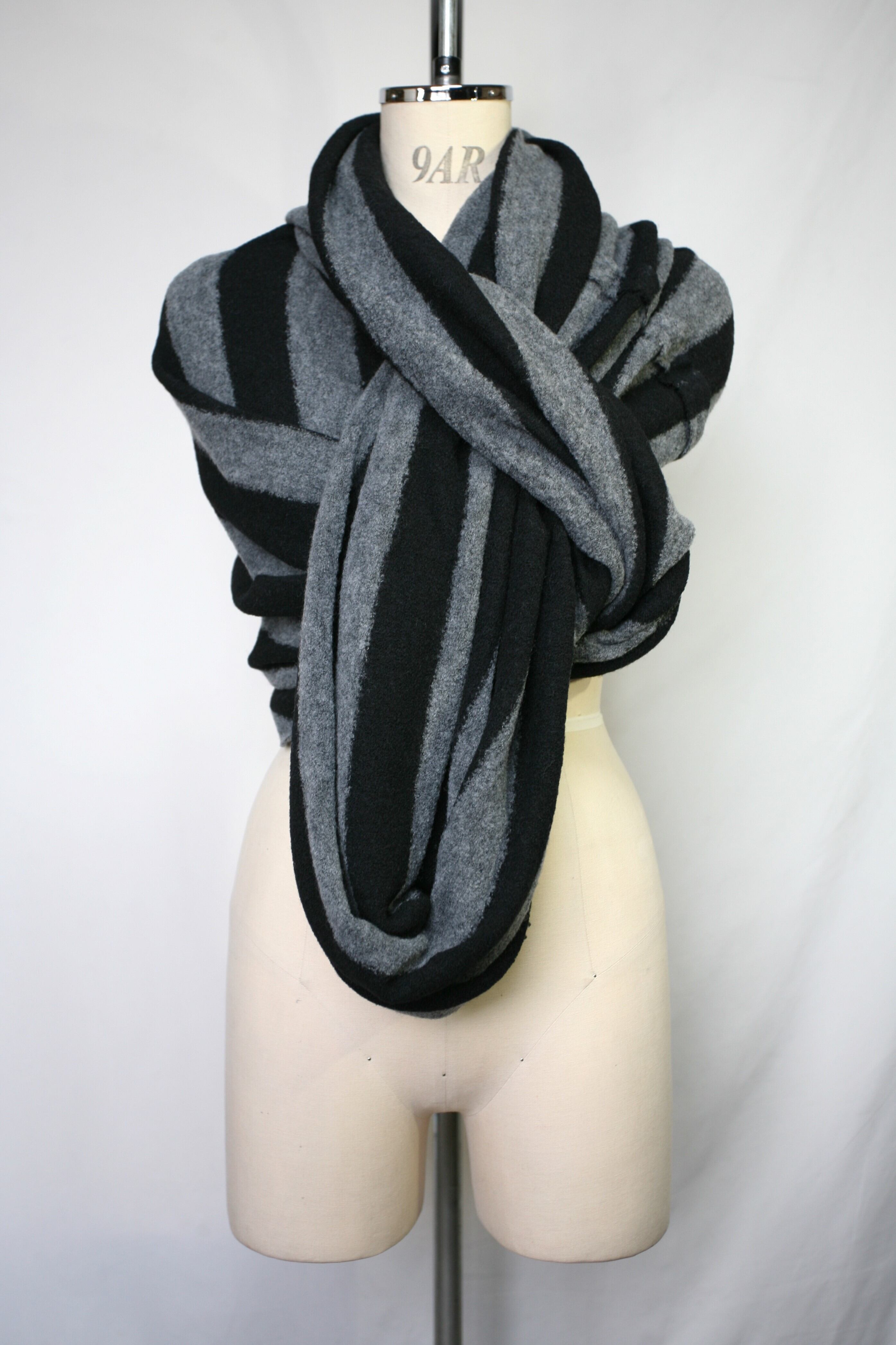説明するのが難しいのですが、スヌード(輪状になったストール)が知恵の輪みたいに2つ繋がっています。