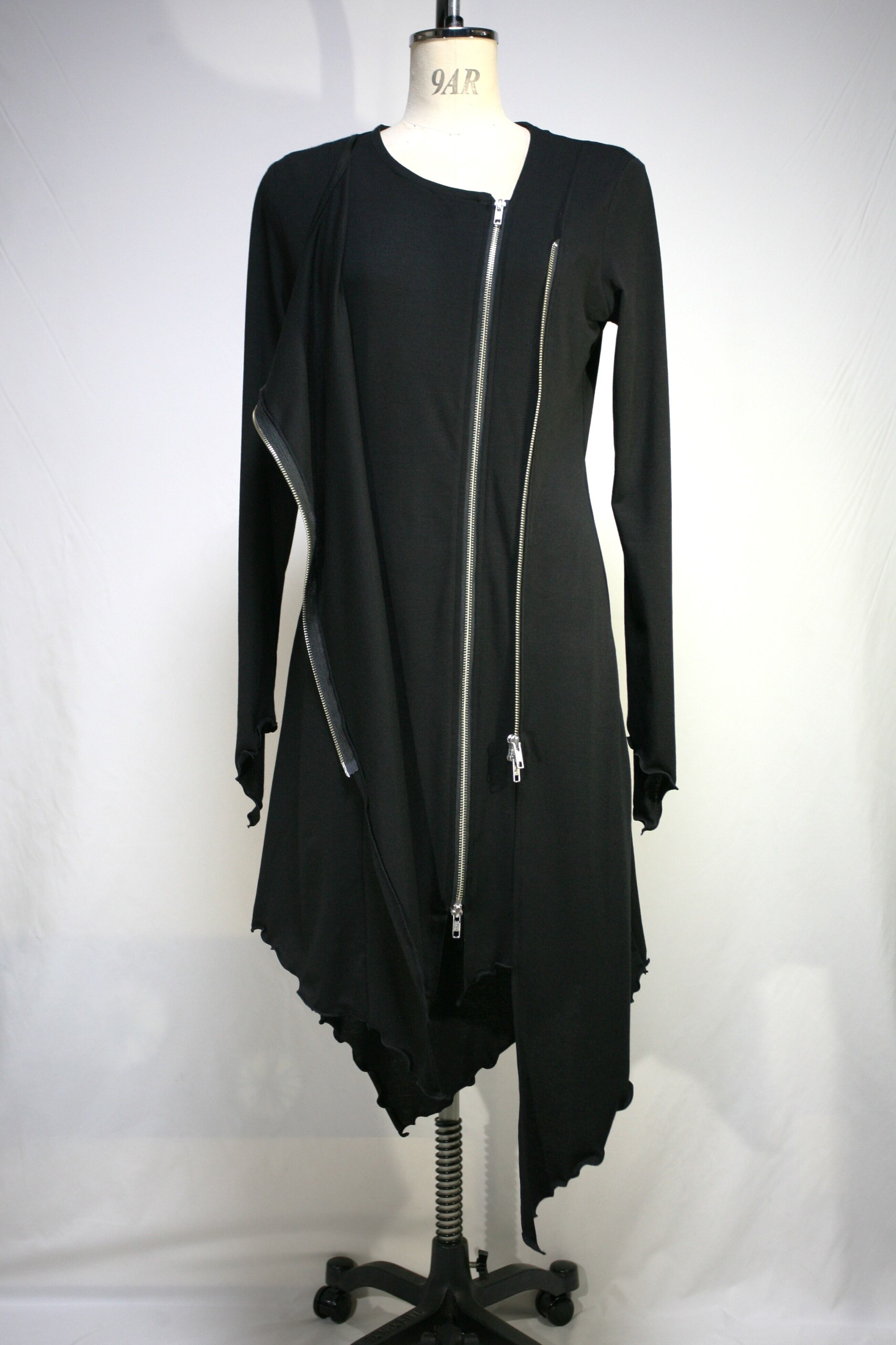 前身頃は2枚重ねになっていて、上前身頃は50㎝Wジッパー、下前身頃は70㎝Wジッパー開きになっています。