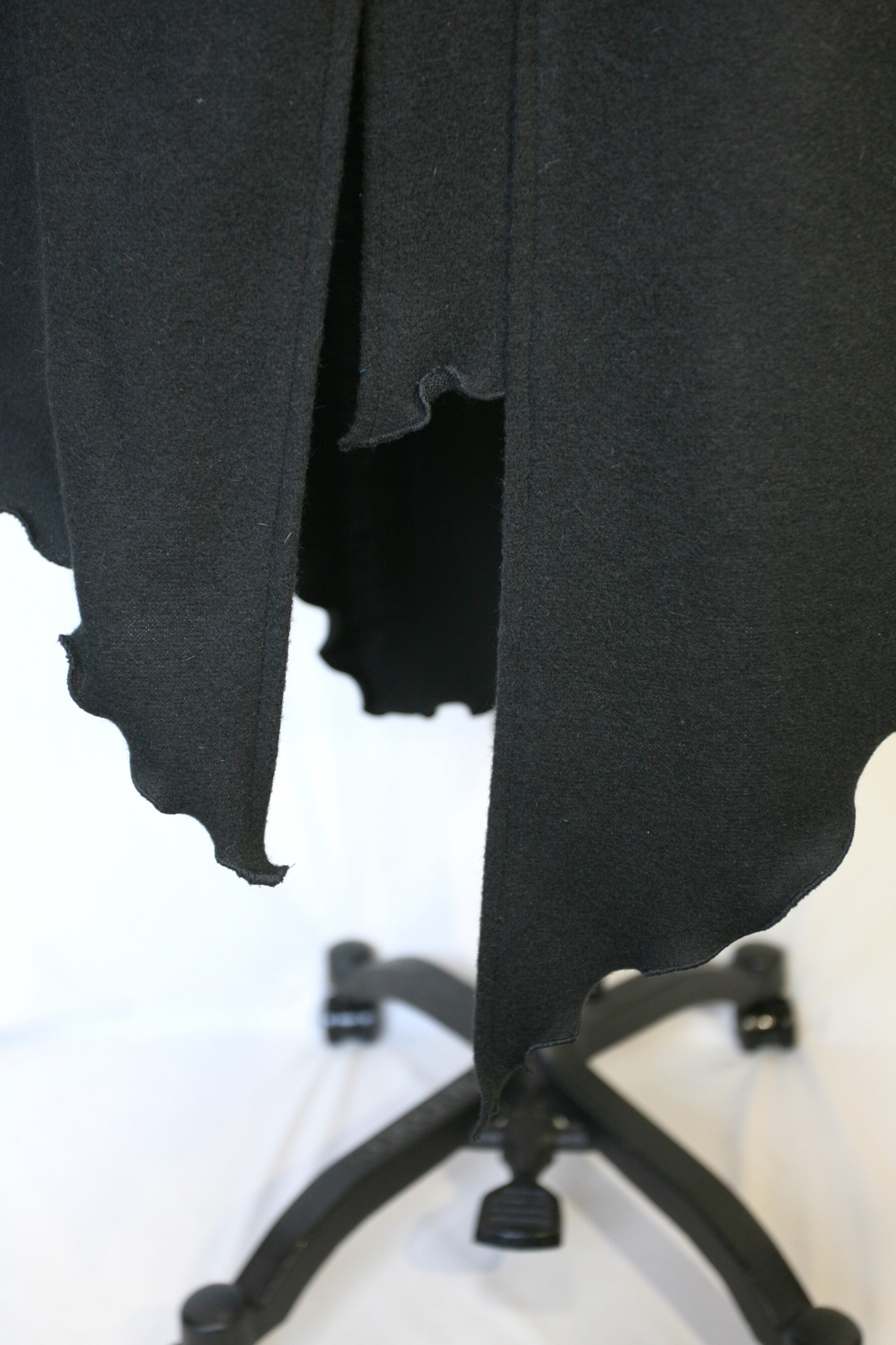 前身頃は右脇見頃の切り替えで2枚重ねになっていて、上前身頃は55㎝逆開ダブルジッパー、下前身頃は60㎝逆開ダブルジッパー開きになっています。