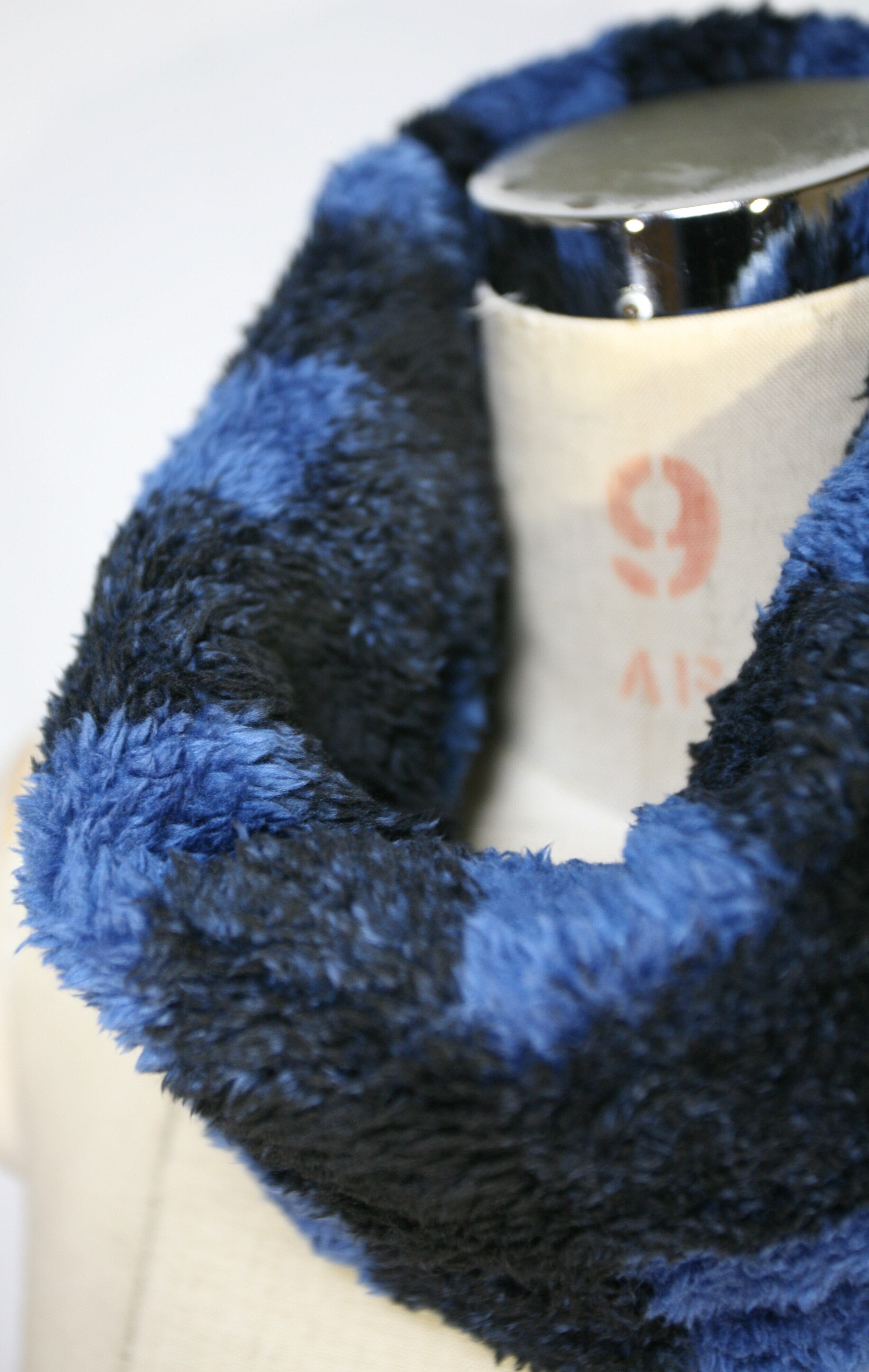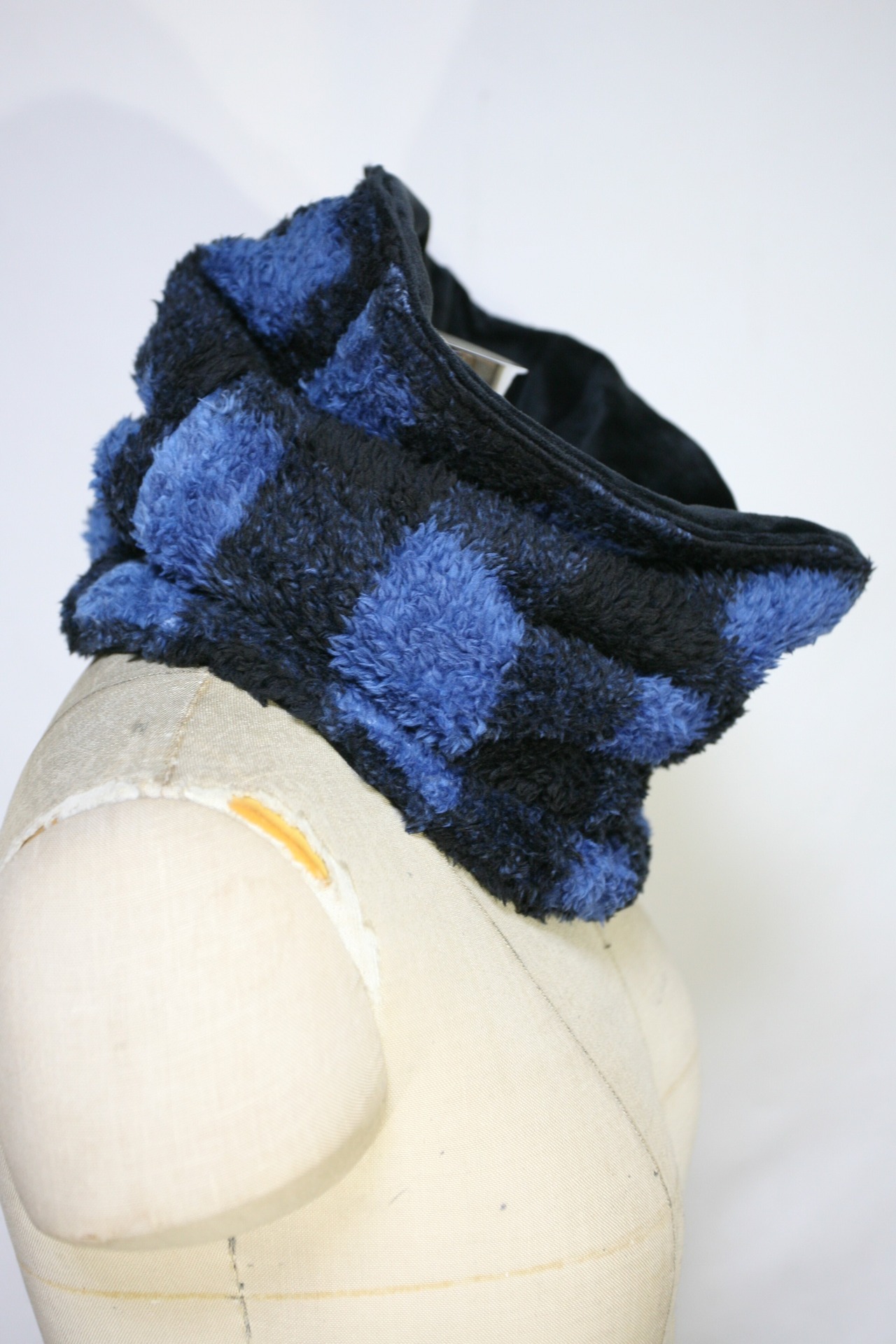 チェック柄と黒無地ベロアの2枚重ねの筒状になって、どちらを表にしても着用して頂けます。