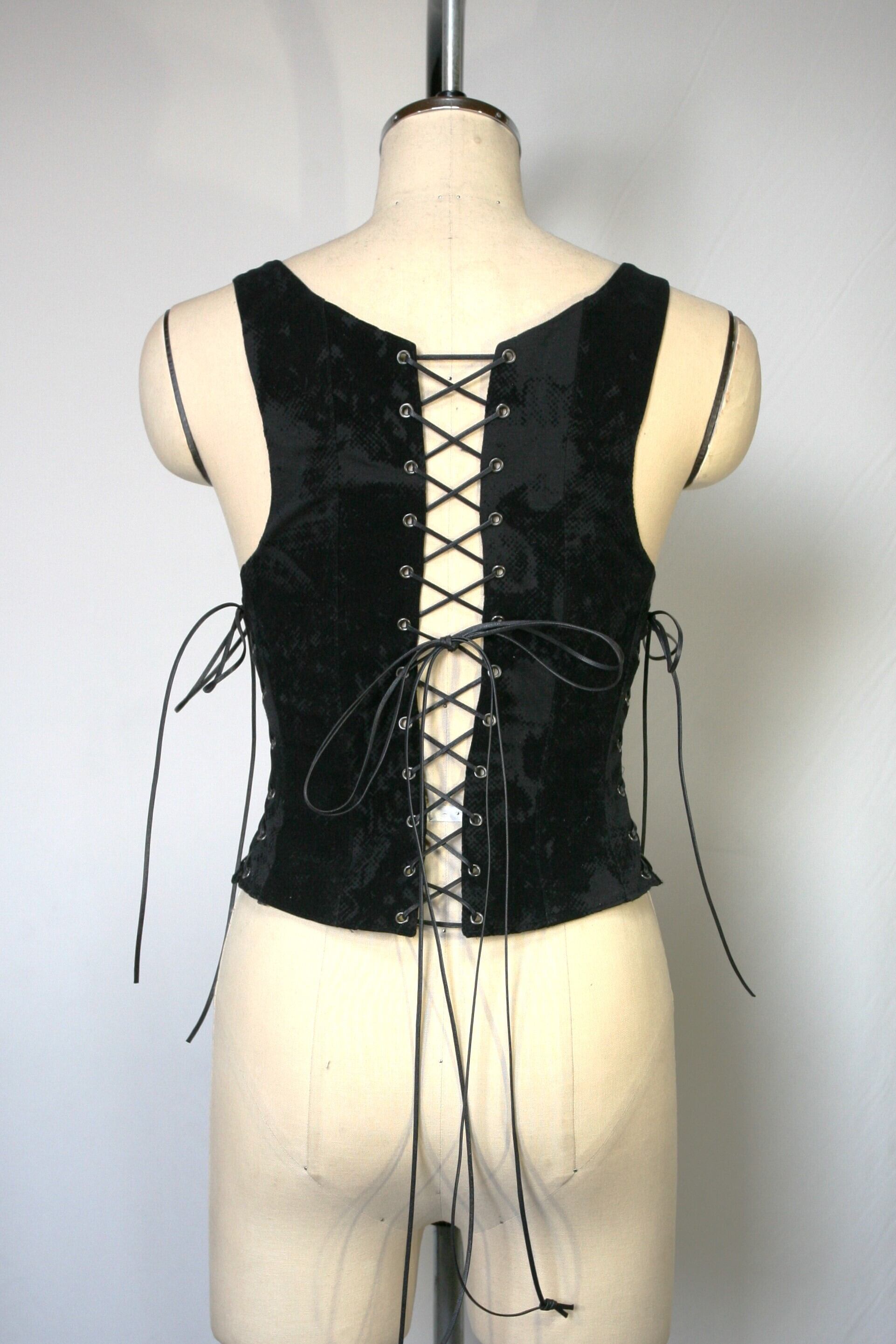 両脇と後中心の編み上げでサイズを調整する事が出来ます。
