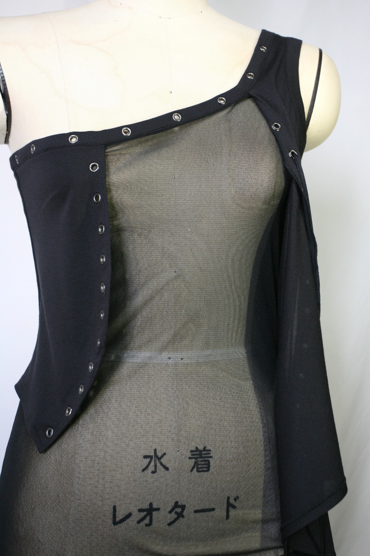 パワーネットの上に部分的に薄手のベア天竺を重ねていて脇、襟ぐり、袖ぐりで縫い合わせています。(ベア天竺は浮いています。)