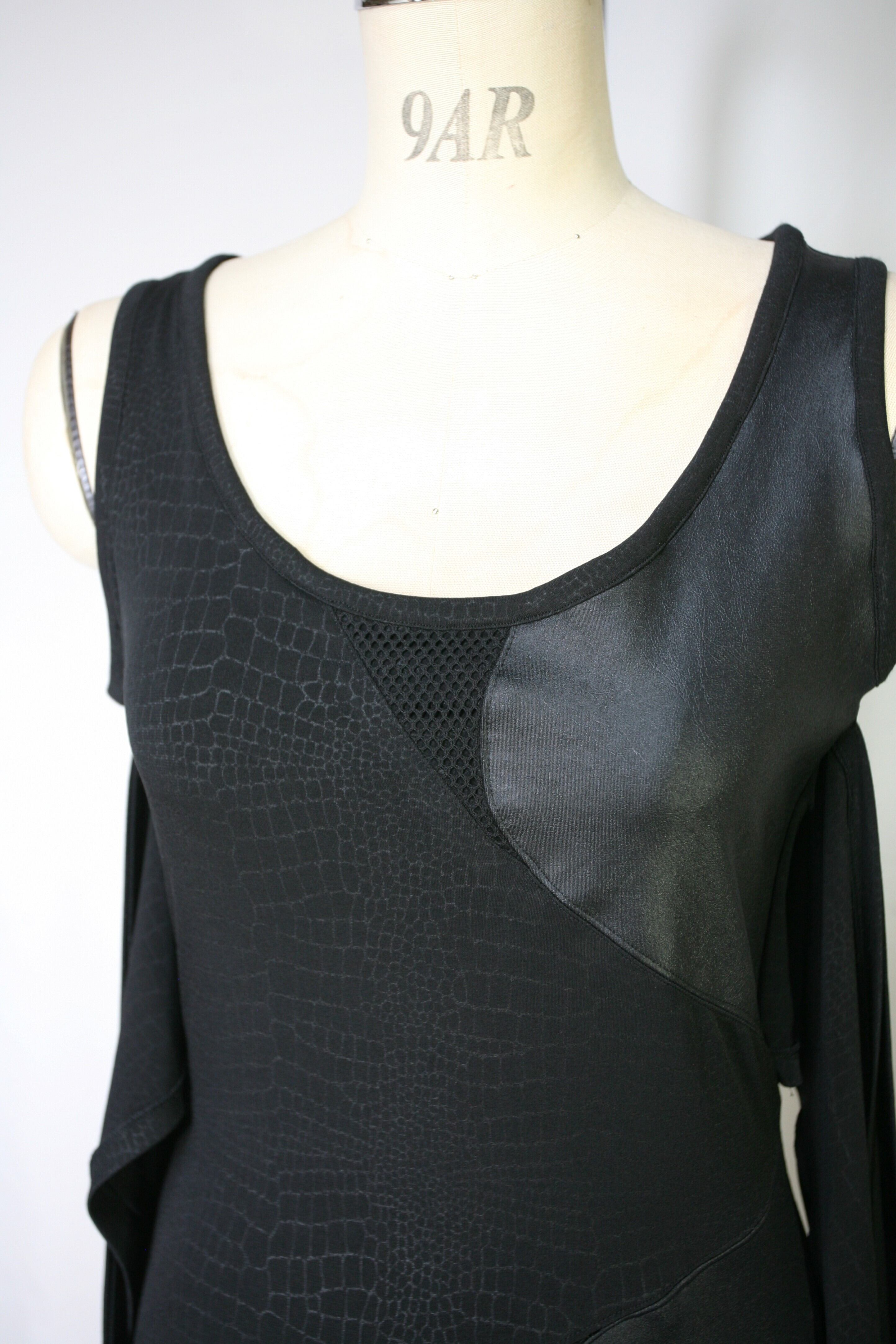 胸元切り替えのメッシュ生地は、クロコ柄のエンボス加工をした表生地に重ねているので透けません。