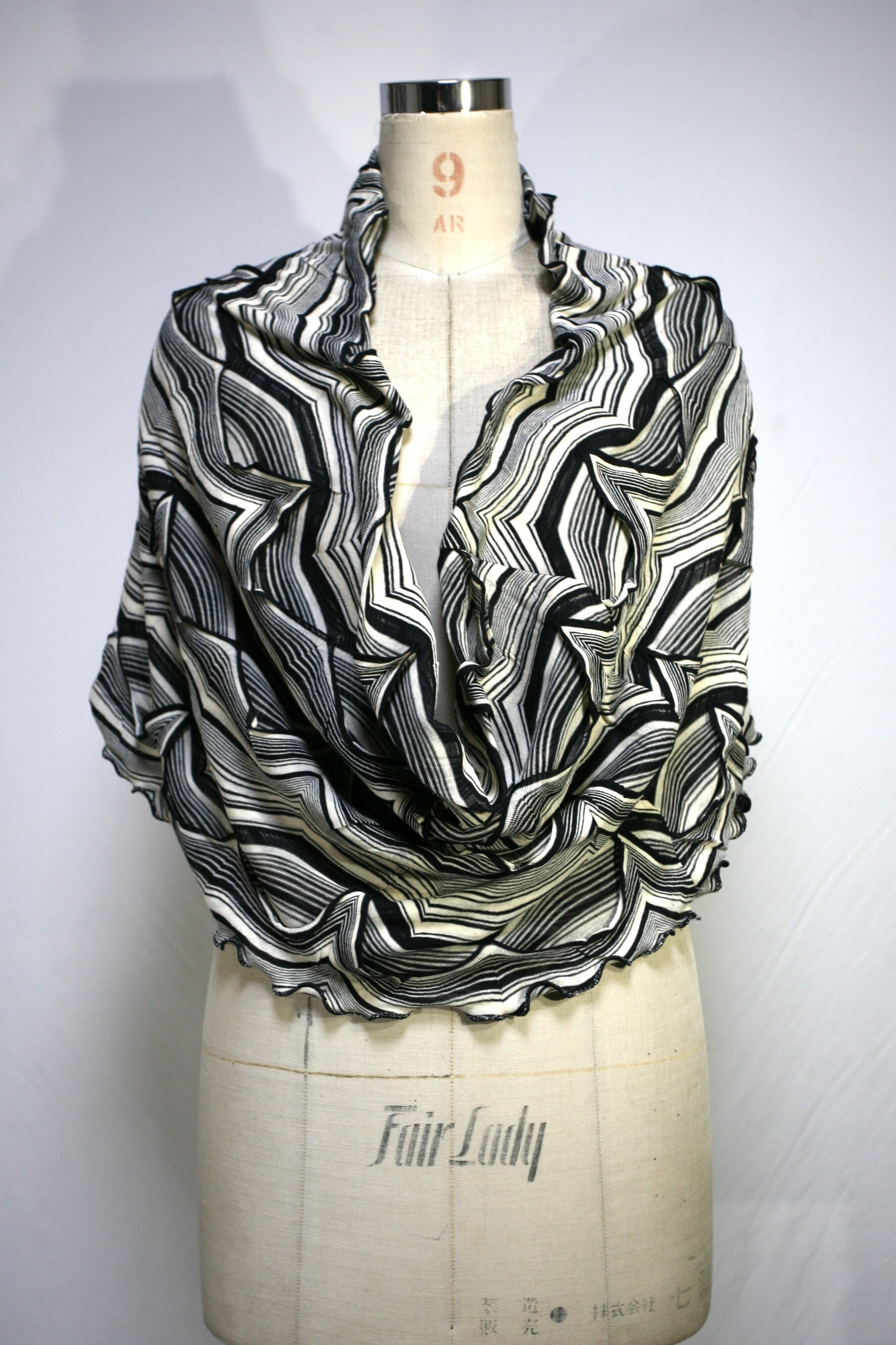 プリント生地は部分的に2枚重ねになっていて浮いています。